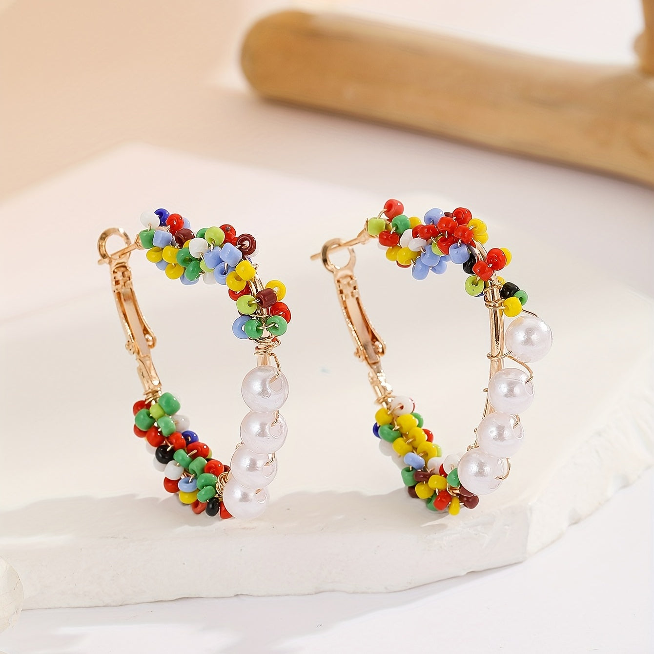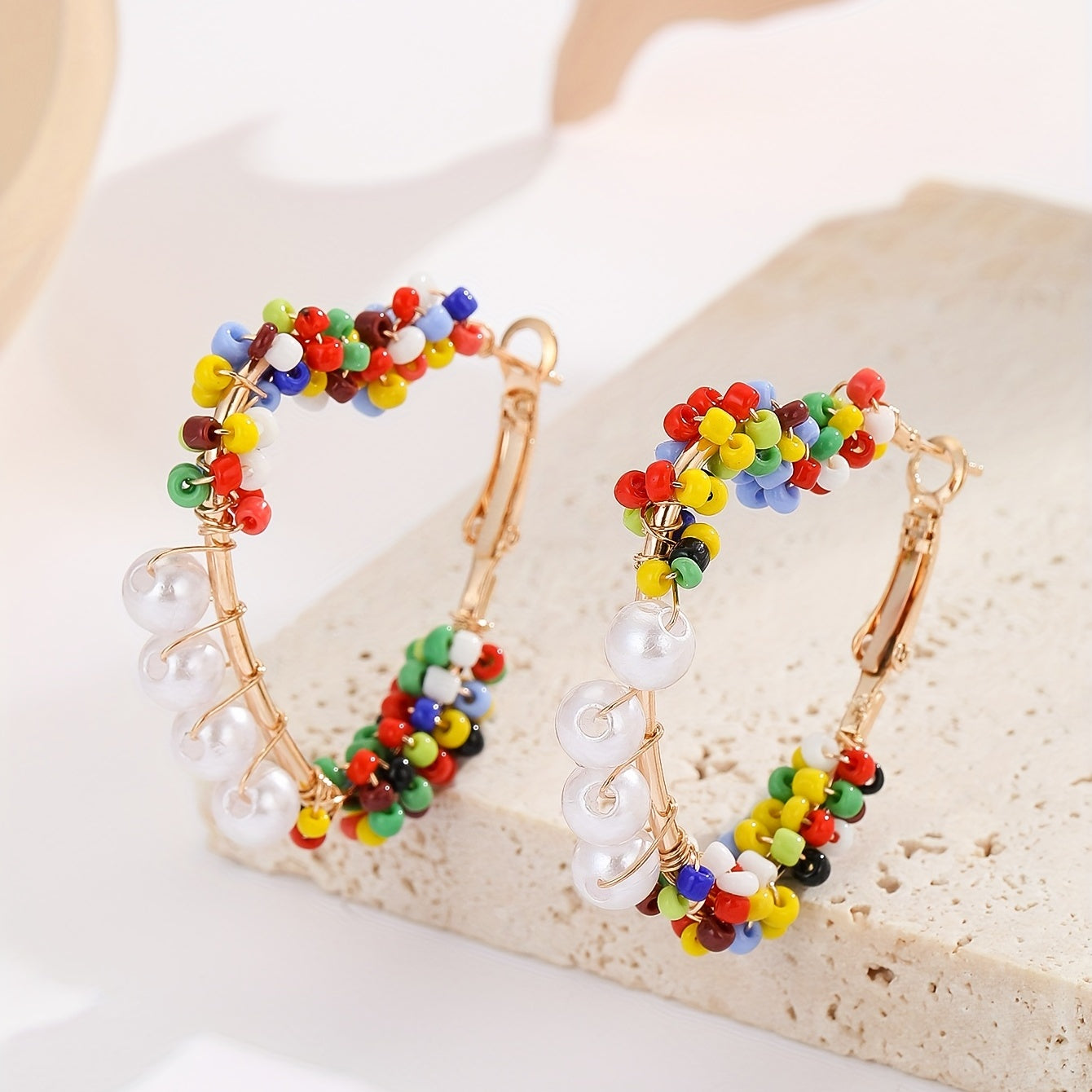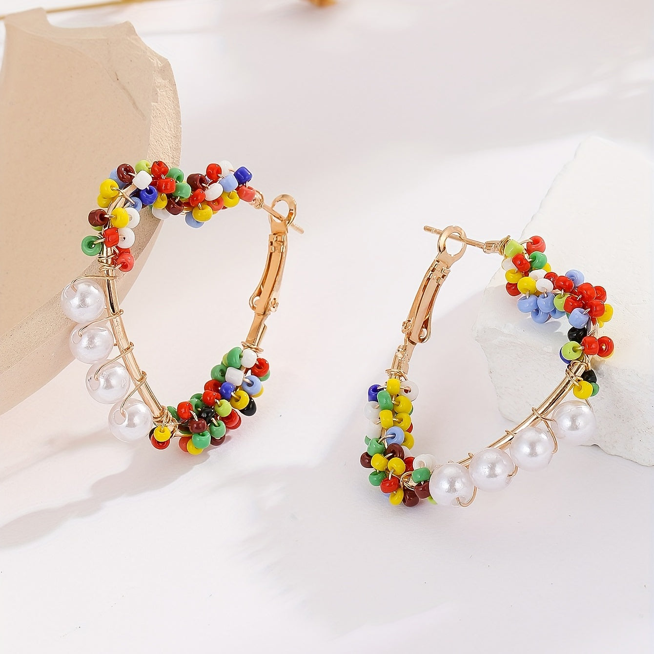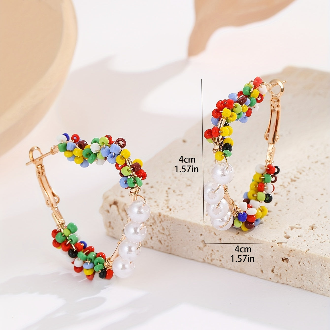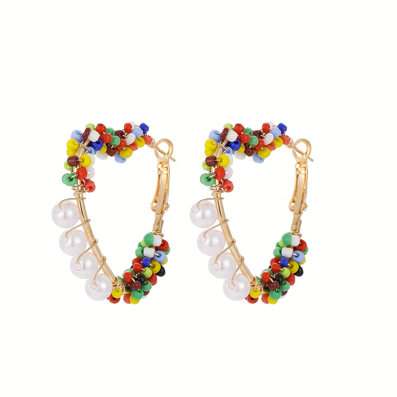 Add a touch of bohemian ethnic style to your look with these delicate hoop earrings. Featuring a hollow heart shape design with faux pearl and colorful beads, these earrings make a perfect gift for the fashionable female in your life.