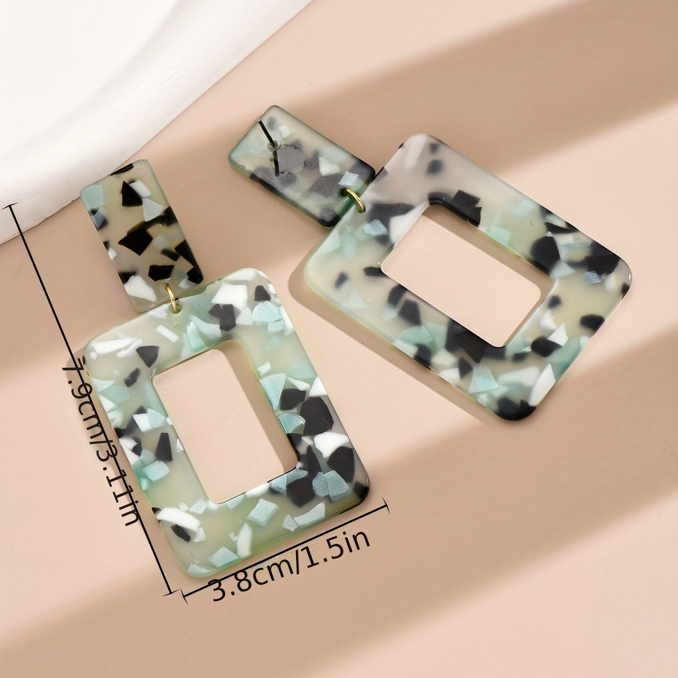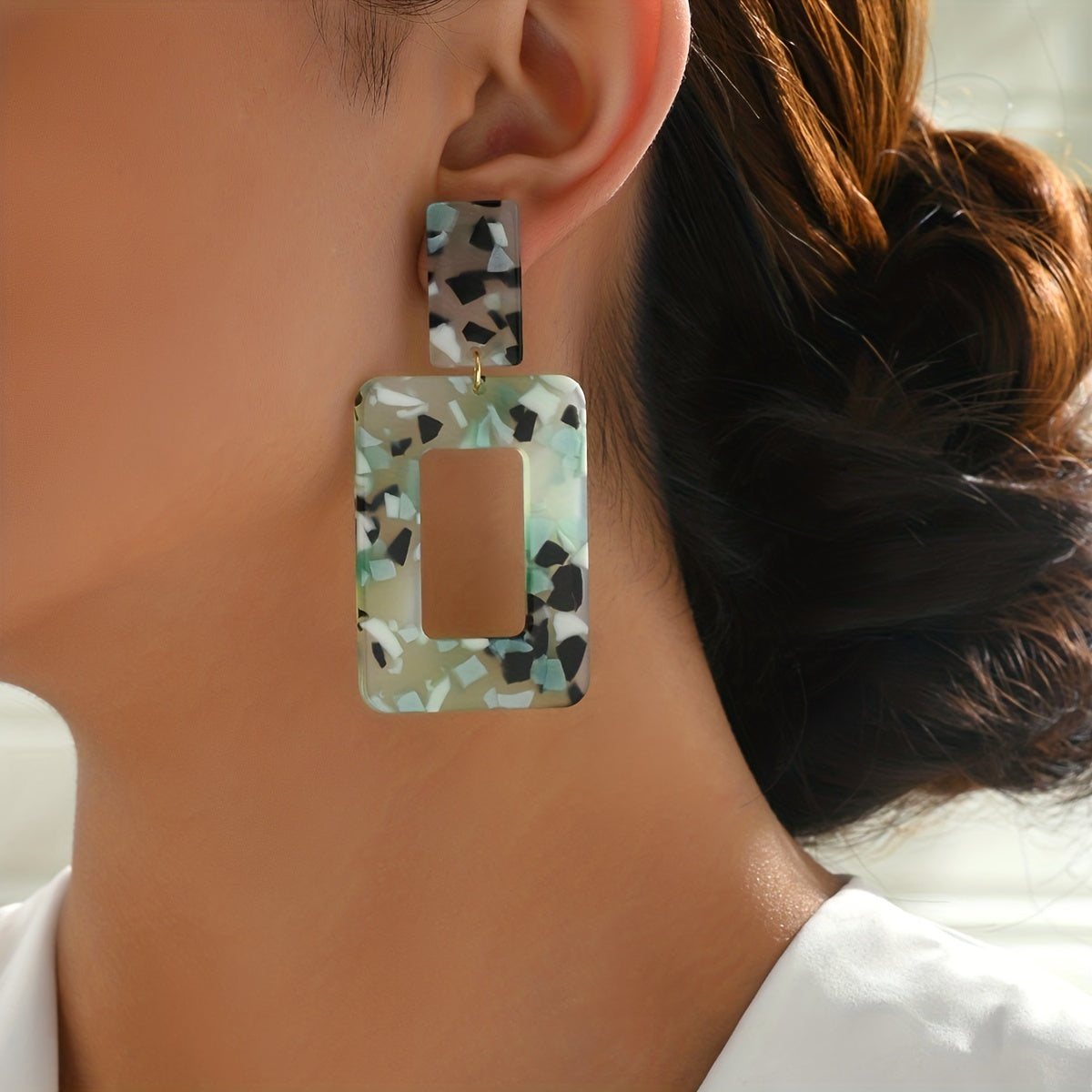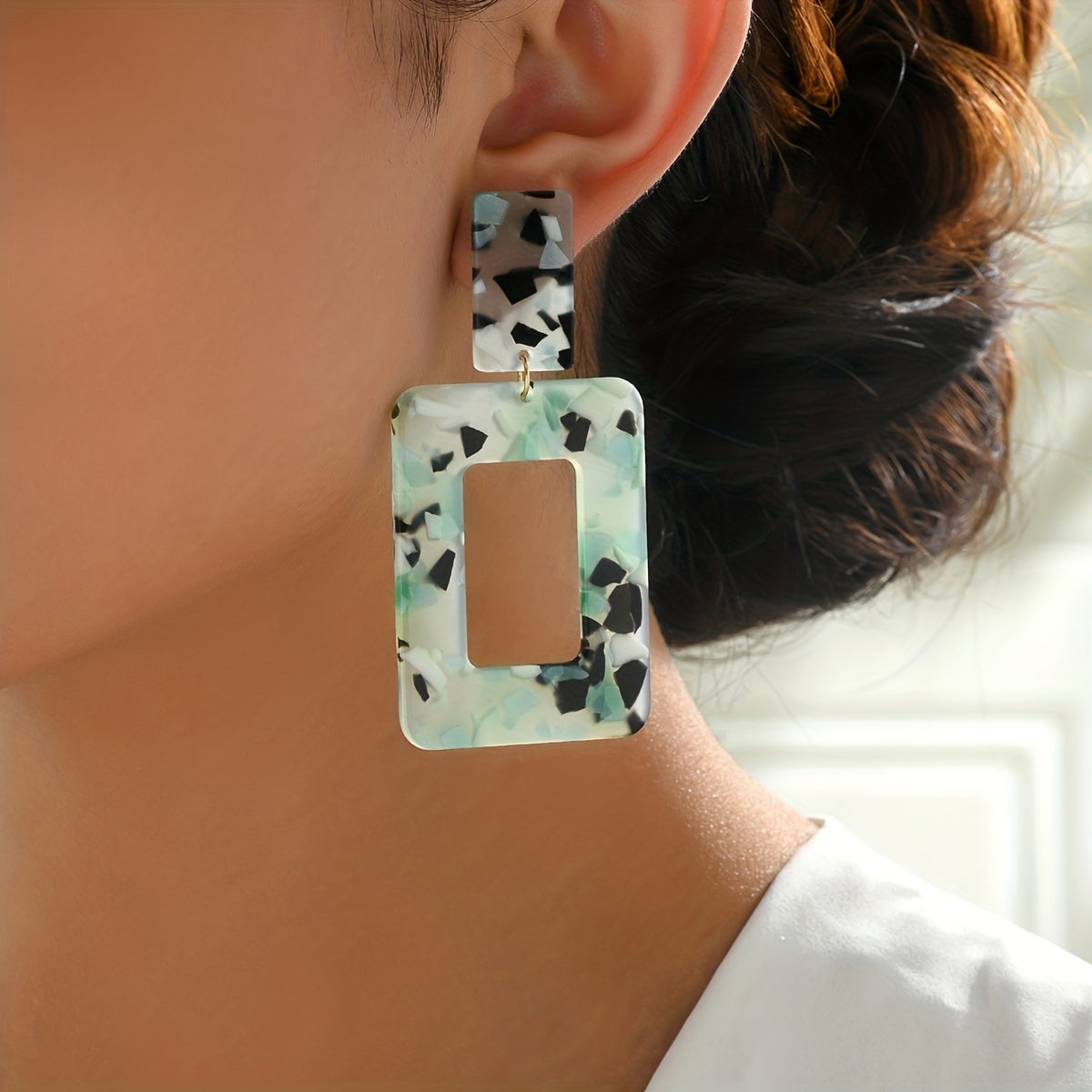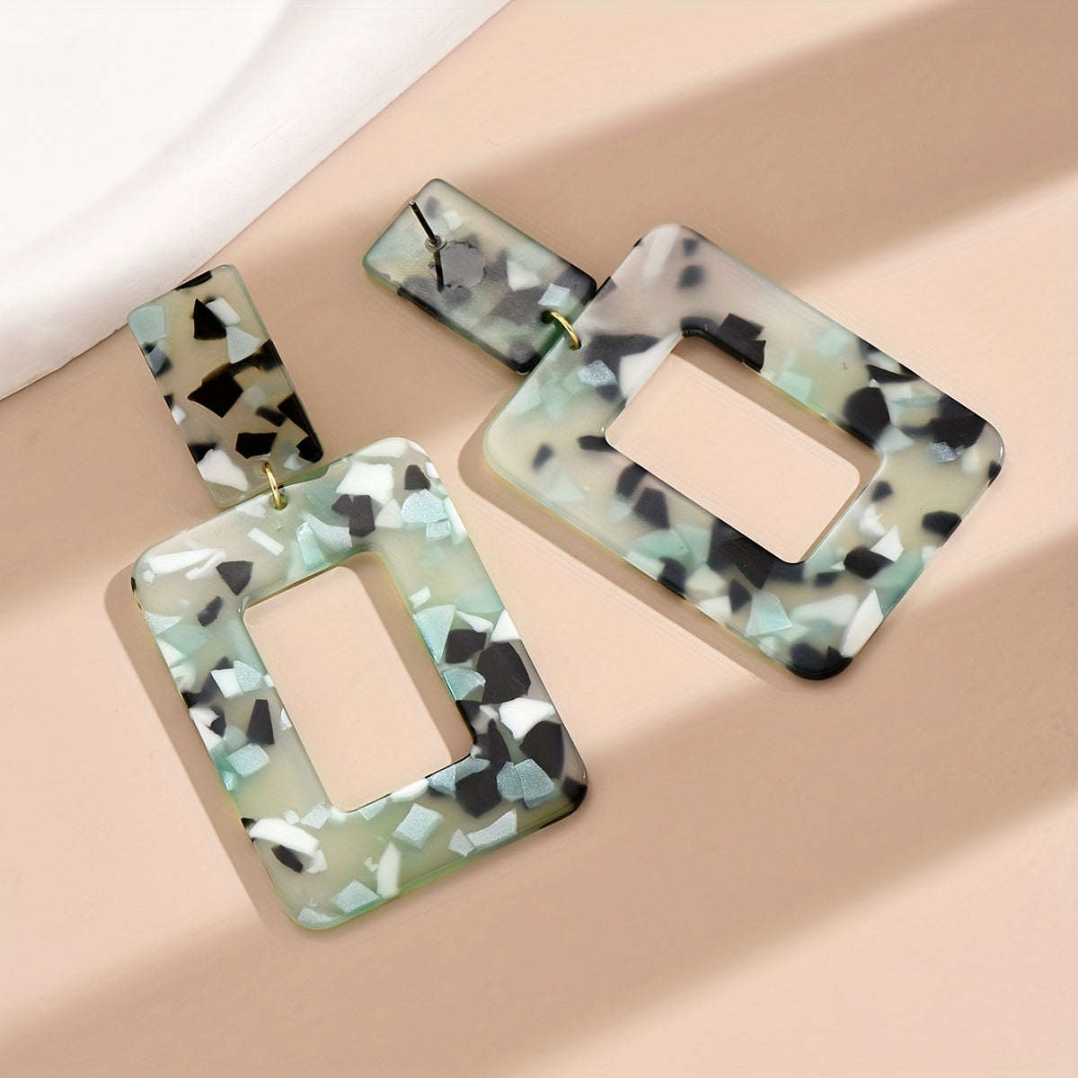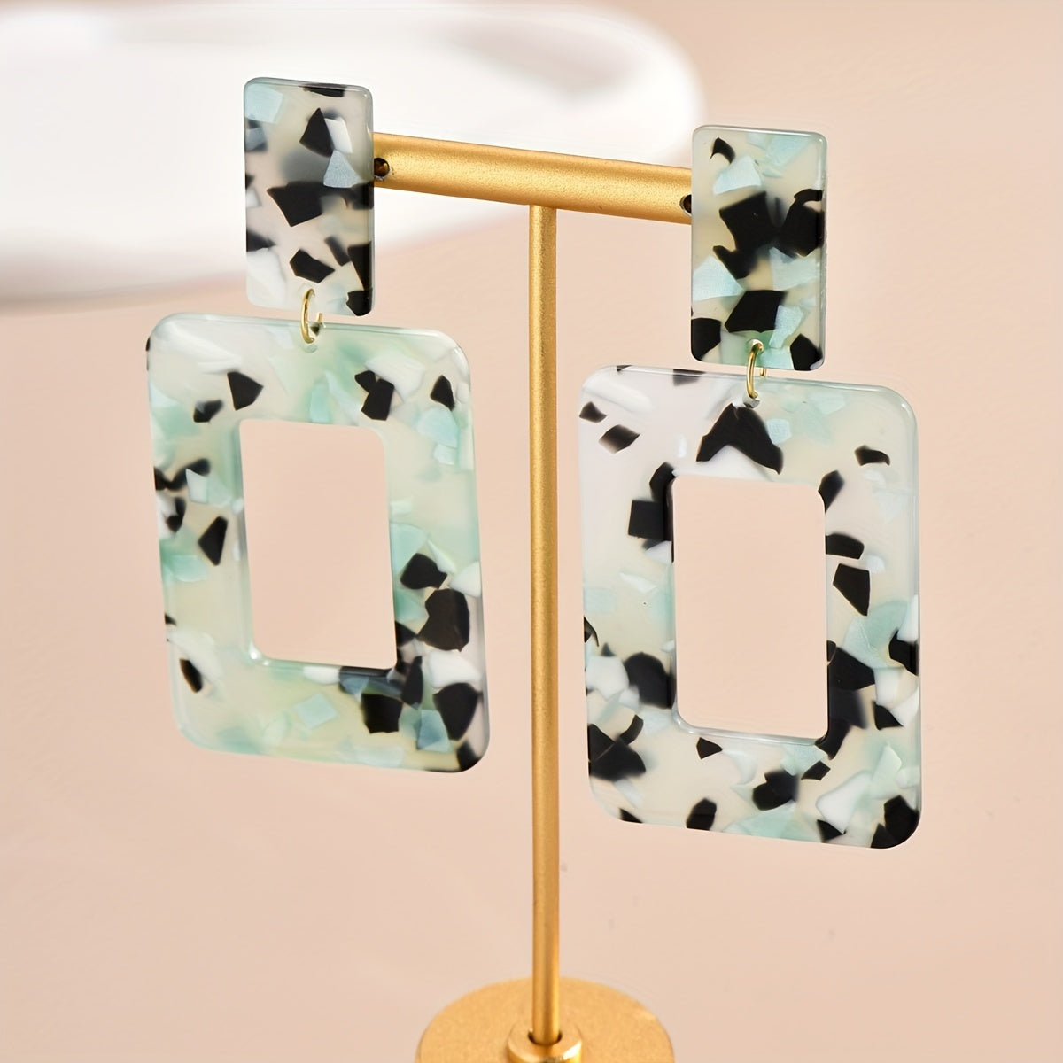 Hollow Rectangle Shape Pattern Dangle Earrings Resin Jewelry