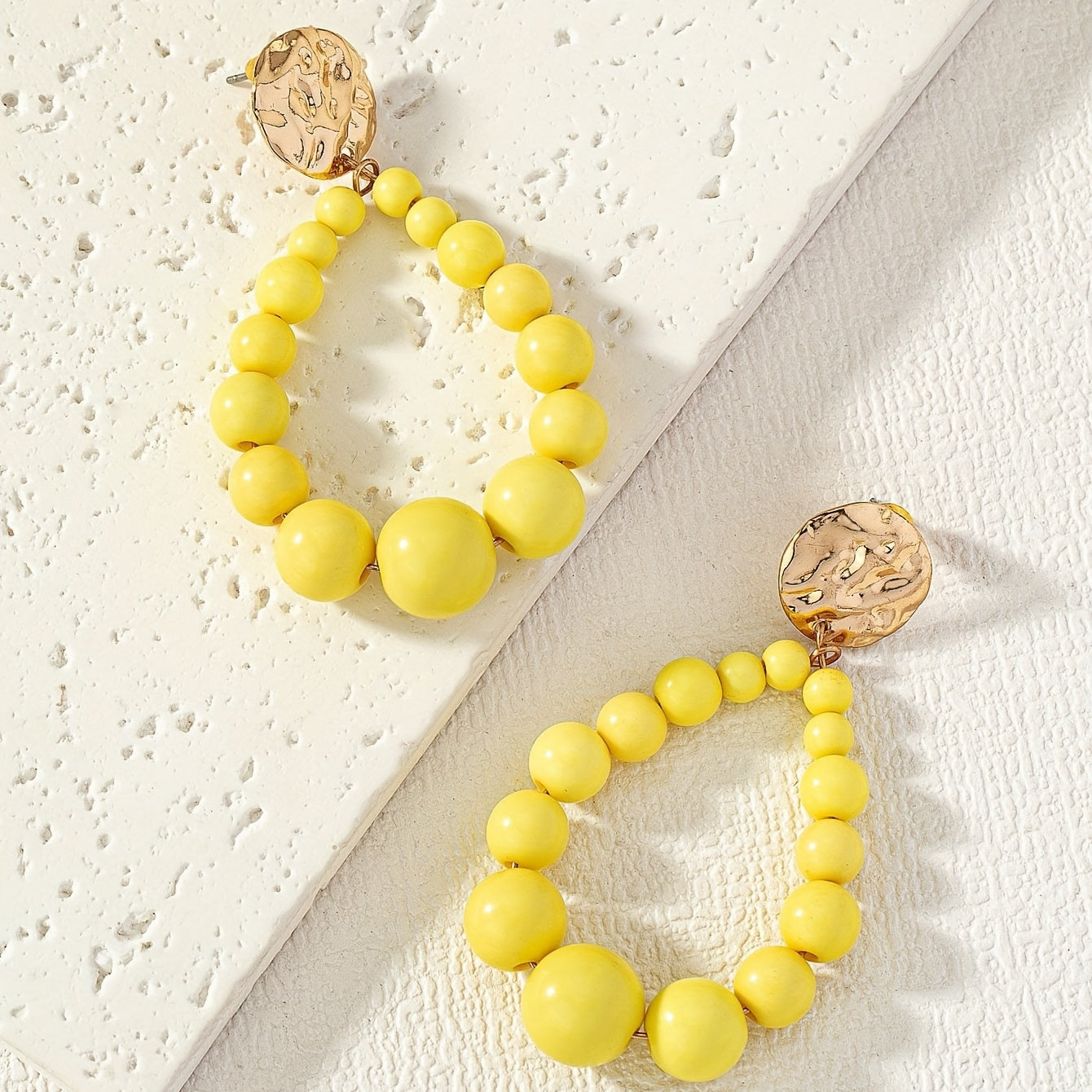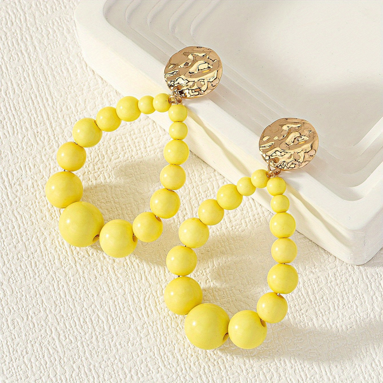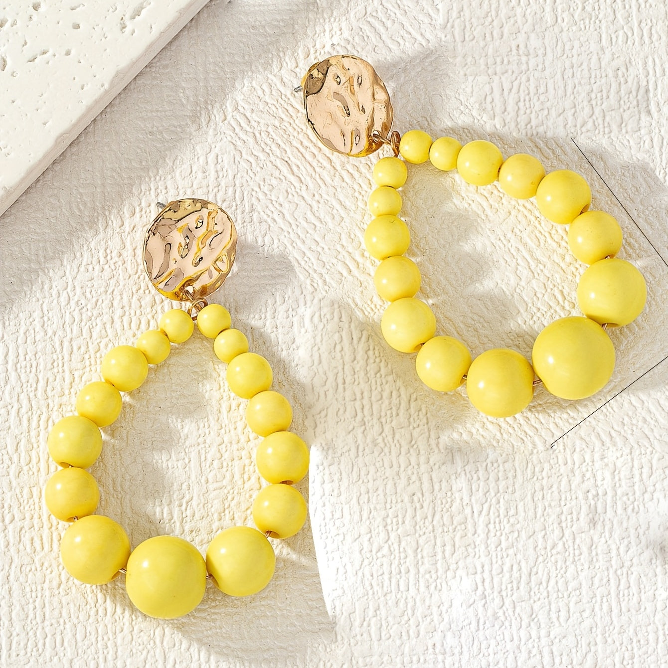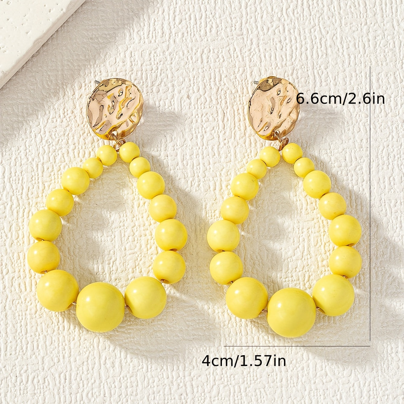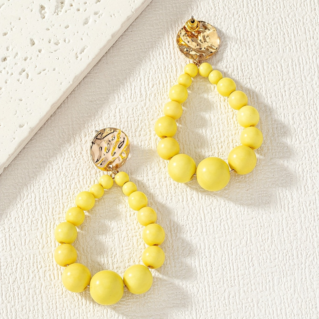 Bohemian-style earrings designed for vocation and tourism, featuring a teardrop shape with yellow bead decoration. Perfect for adding a touch of charm to your outfit.