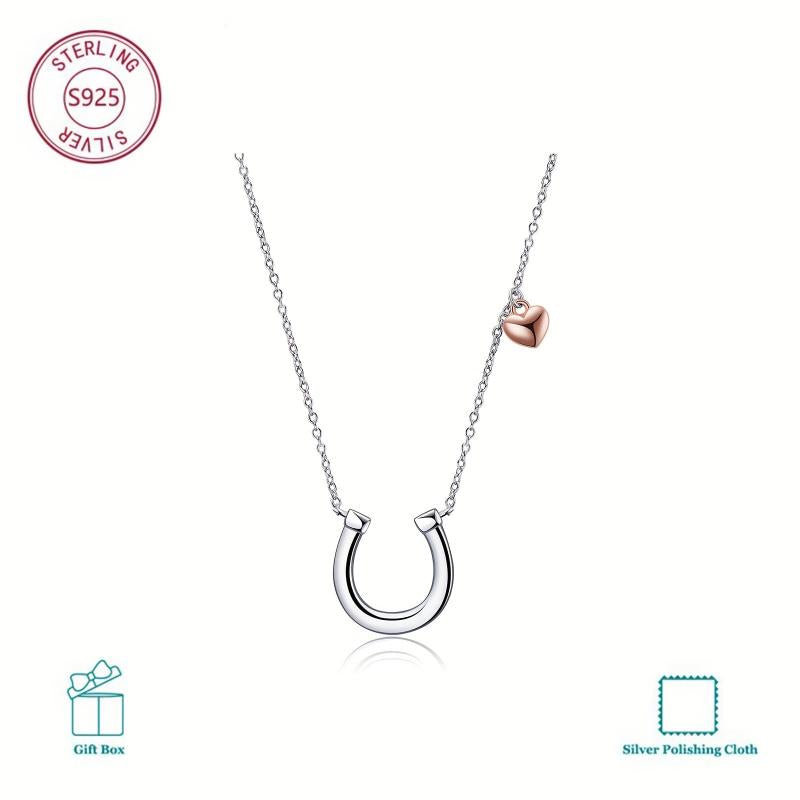 This elegant horseshoe necklace is made of 925 sterling silver, perfect for women and mothers. The detailed horse pendant adds a touch of beauty and charm to any outfit.