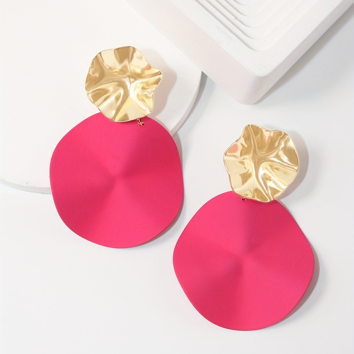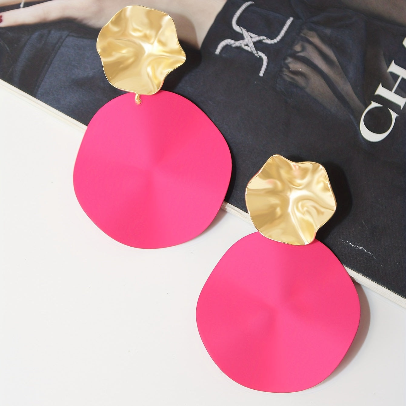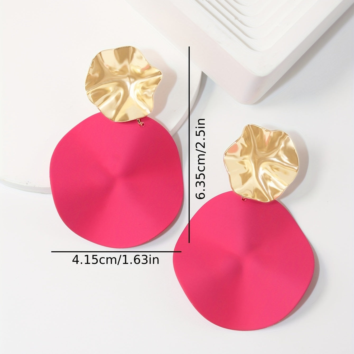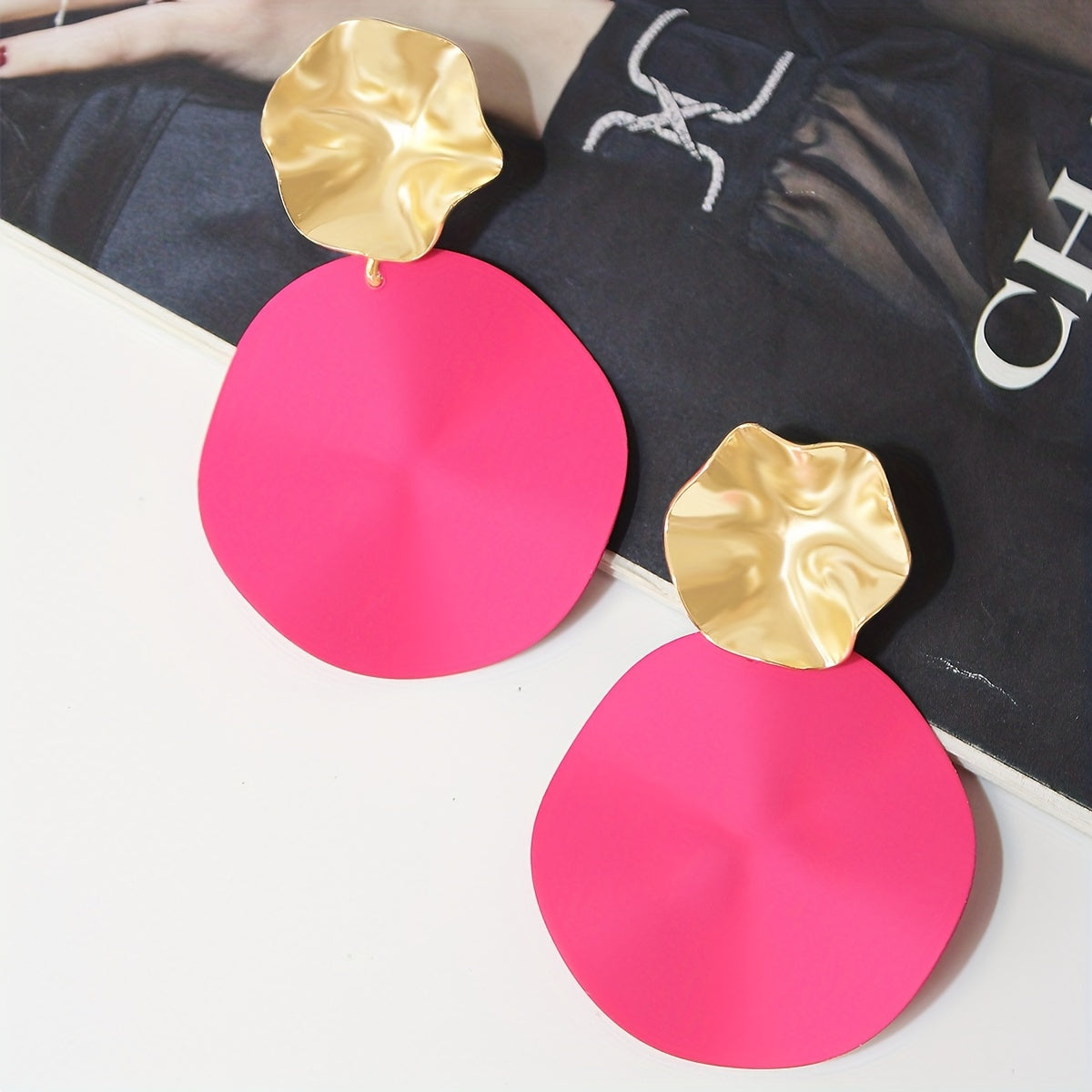 Hot Pink Irregular Round Dangle Earrings Iron 18K Plated Jewelry