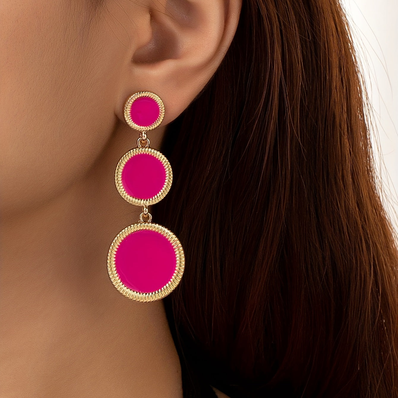 • Hot pink round sheet dangle earrings