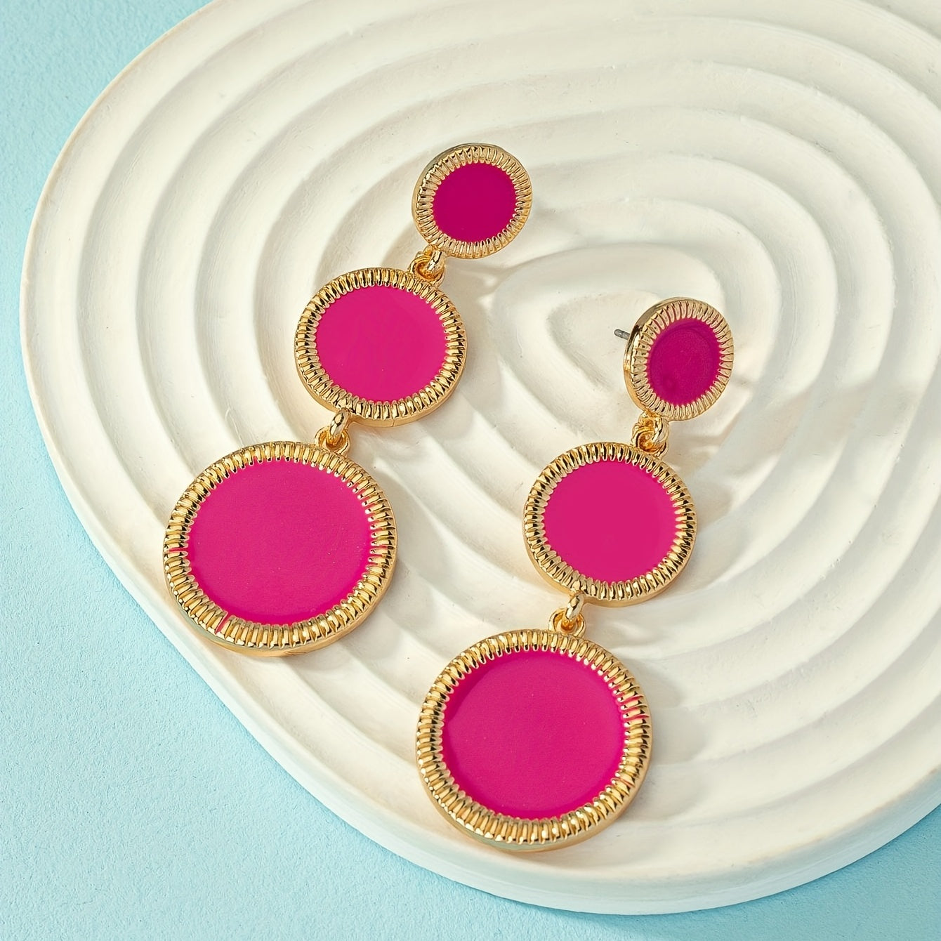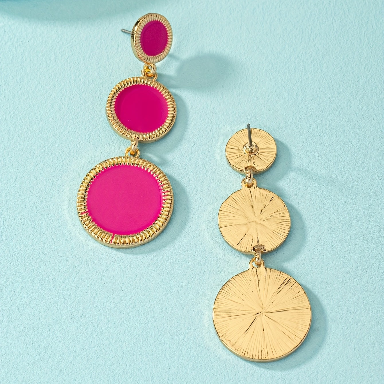 Hot Pink Round Sheet Dangle Earrings Alloy 18K Plated Jewelry