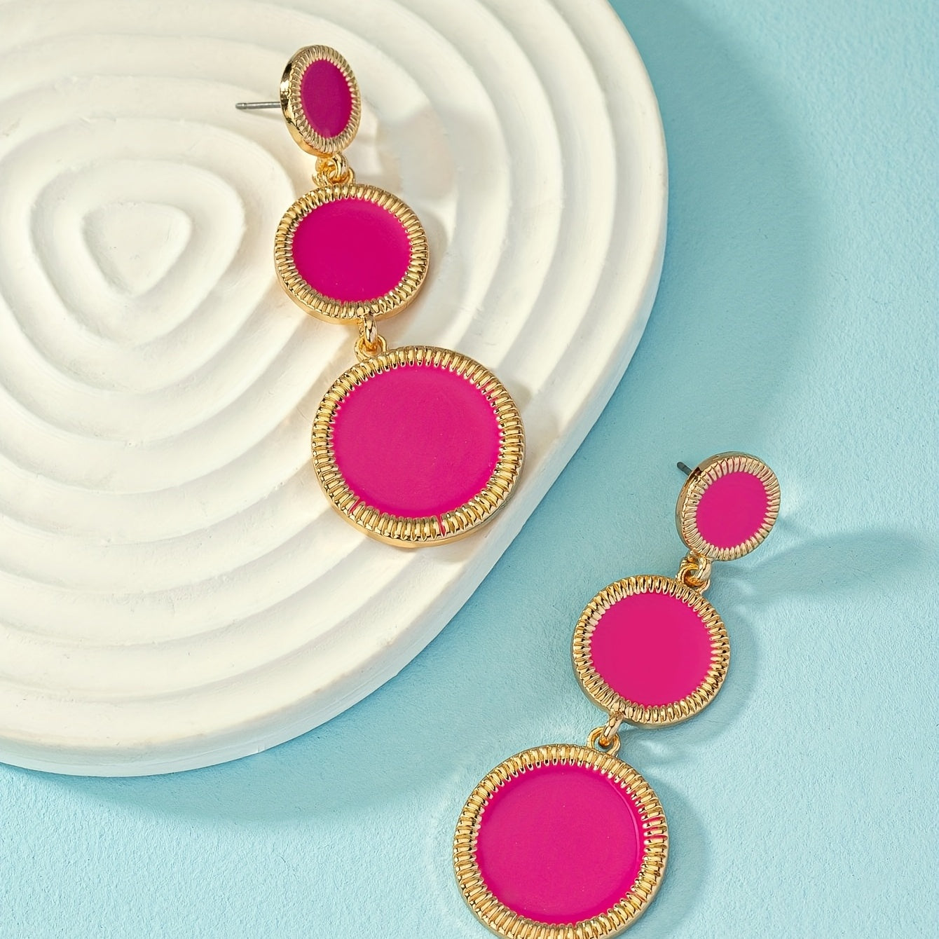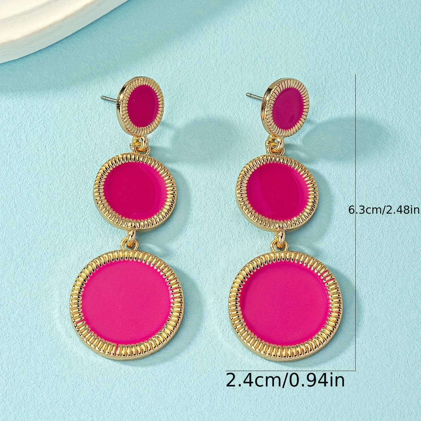 These hot pink round sheet dangle earrings are perfect for adding a touch of sexy leisure style to any outfit. Made from alloy with 18K plating, these earrings are delicate and make a great gift for any female.