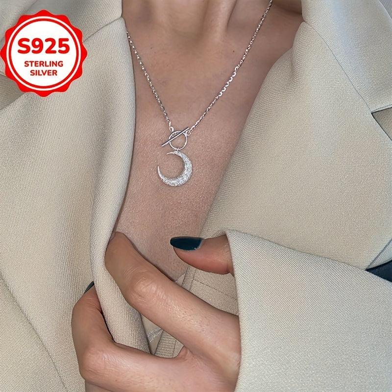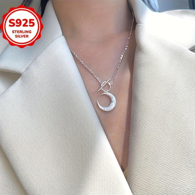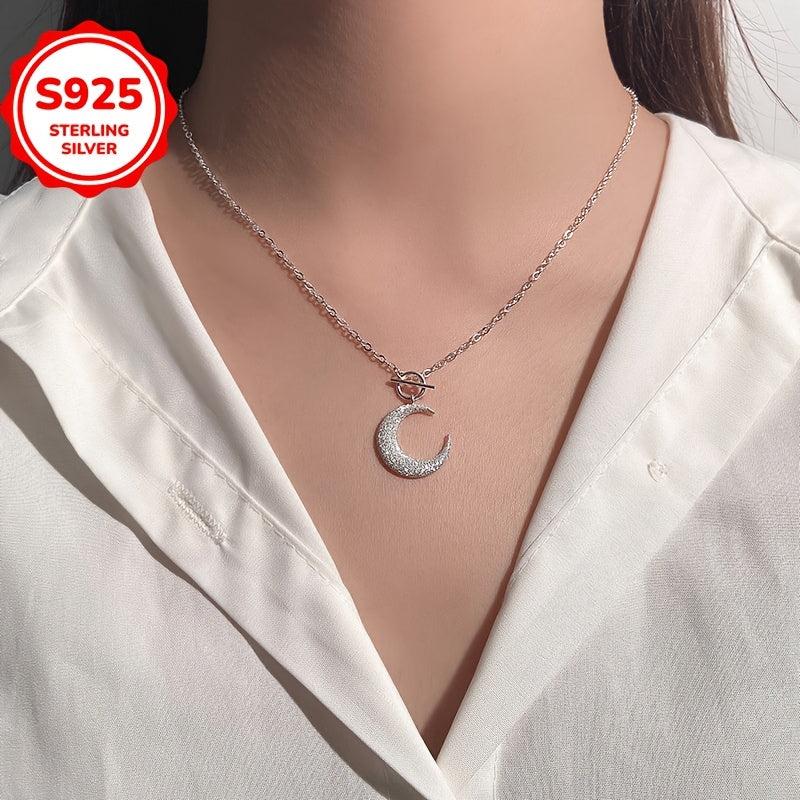This necklace features a sparkling moon pendant on a delicate collarbone chain that is hypoallergenic, making it a perfect gift for all seasons.