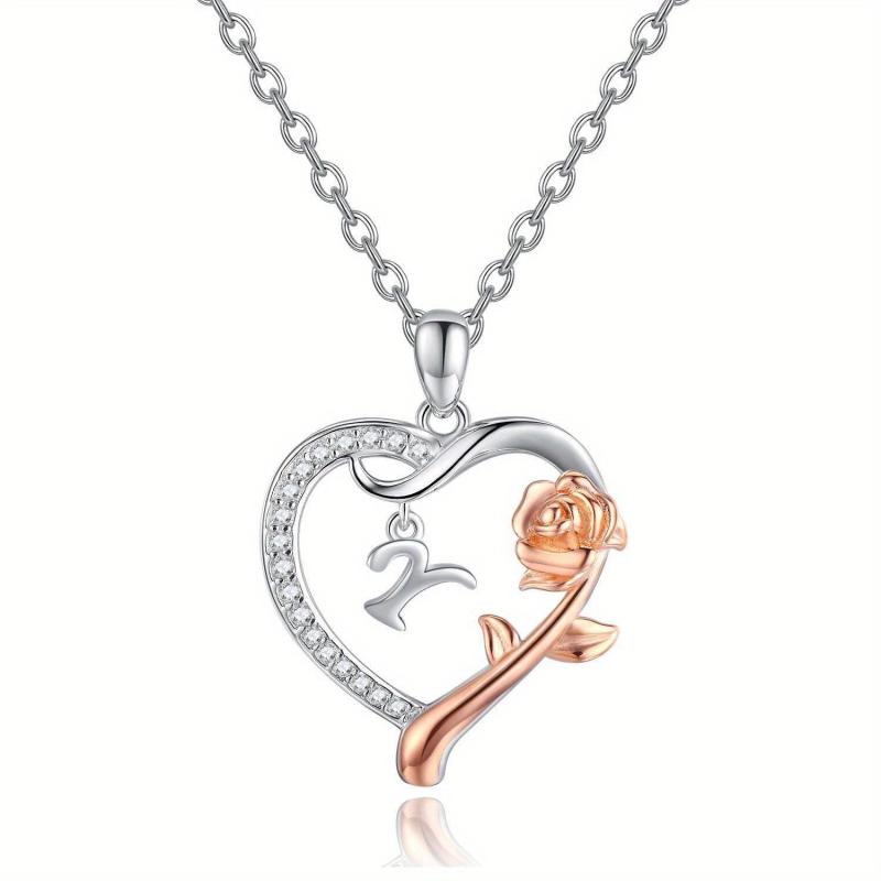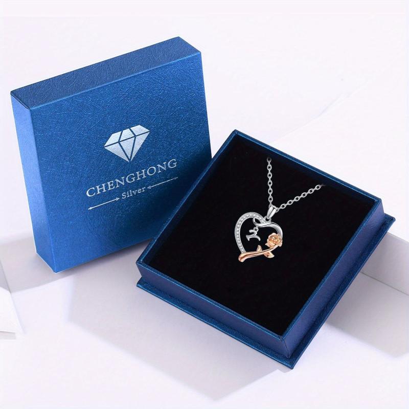 This beautiful initial necklace features a roseflower heart letter pendant made of sterling silver.