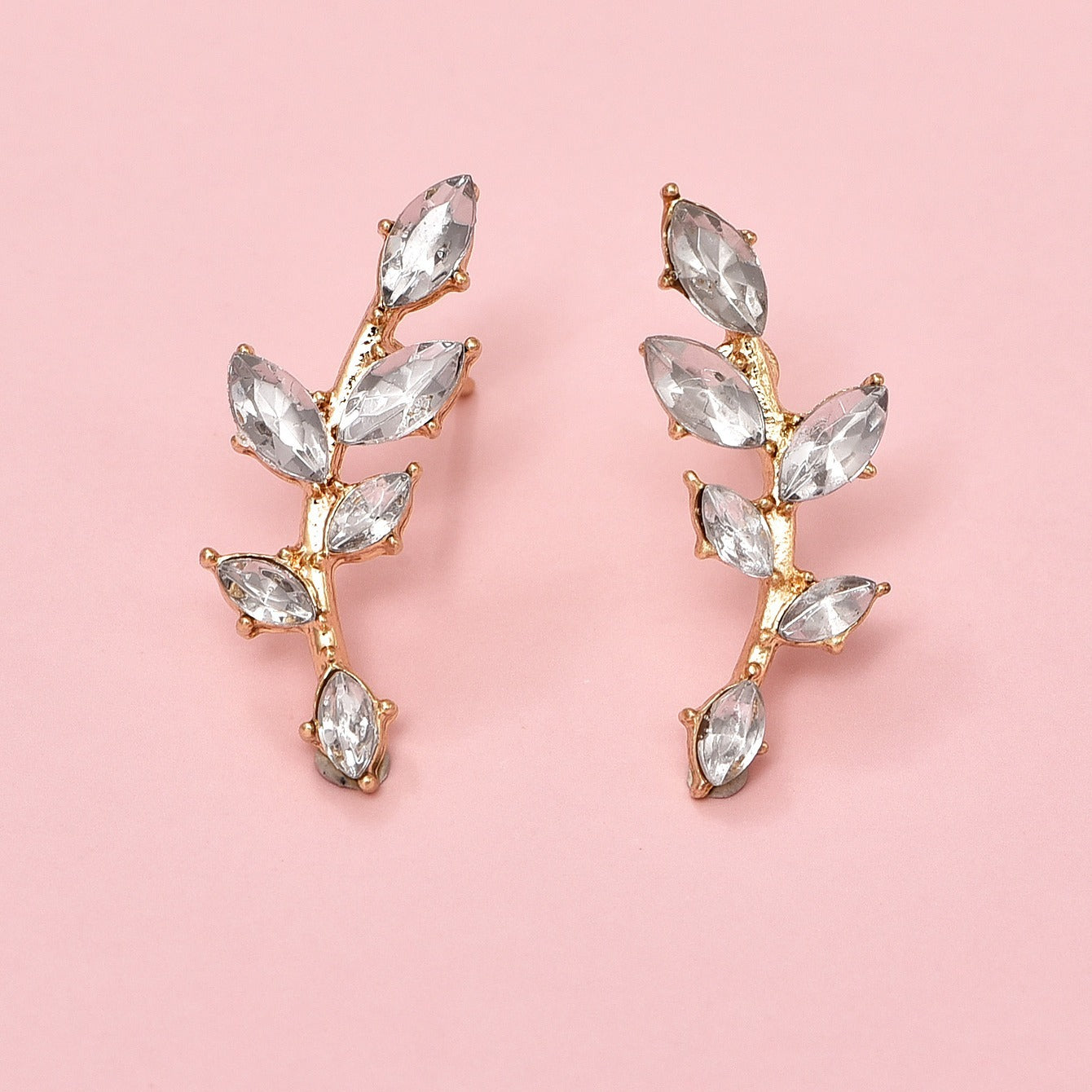 Elevate your style with these stunning leaf crystal ear crawler earrings. Perfect for adding a touch of sparkle to any outfit.