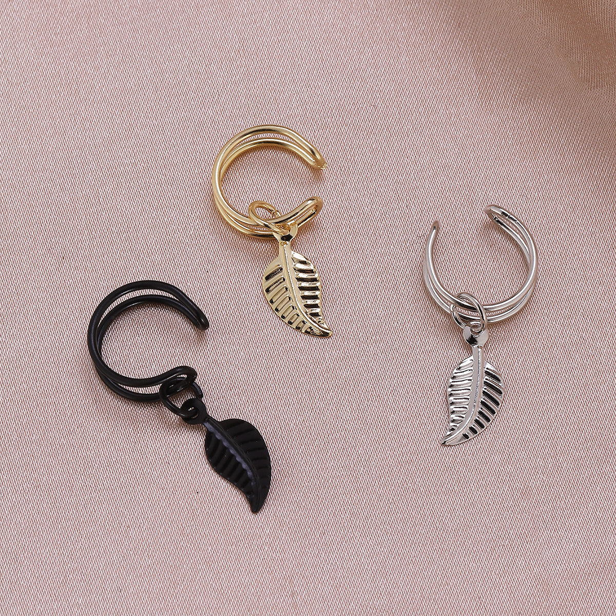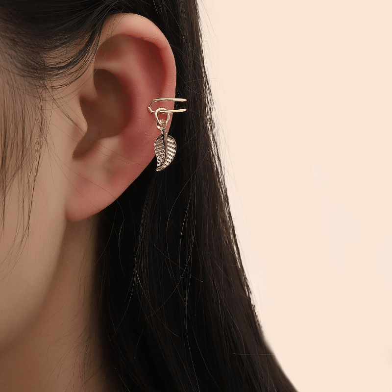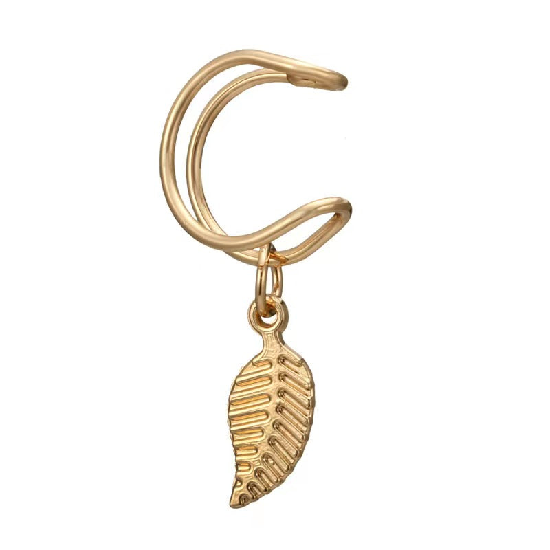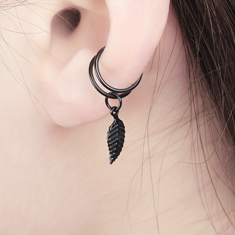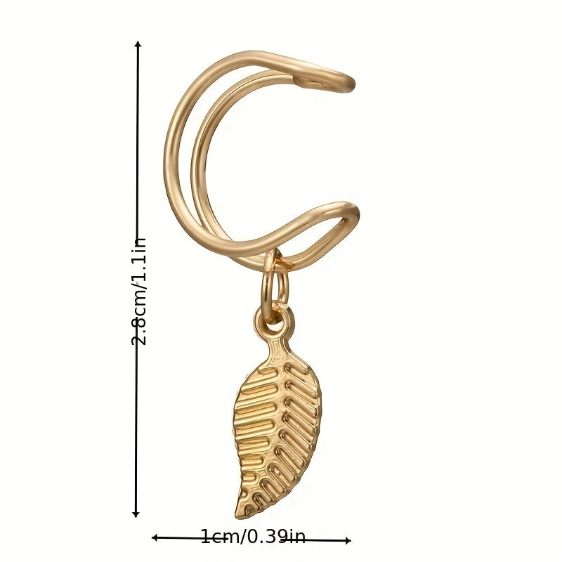 18K plated stainless steel clip-on earrings featuring a stylish leaf pendant design. Perfect for daily casual wear.