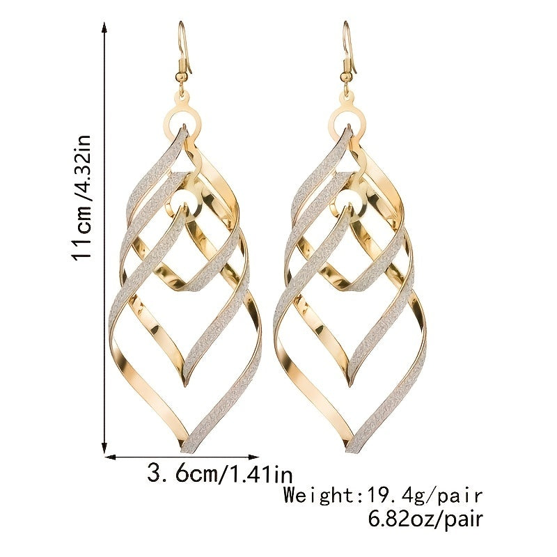 These earrings feature a unique swirling geometric design that adds a touch of personality to your look.