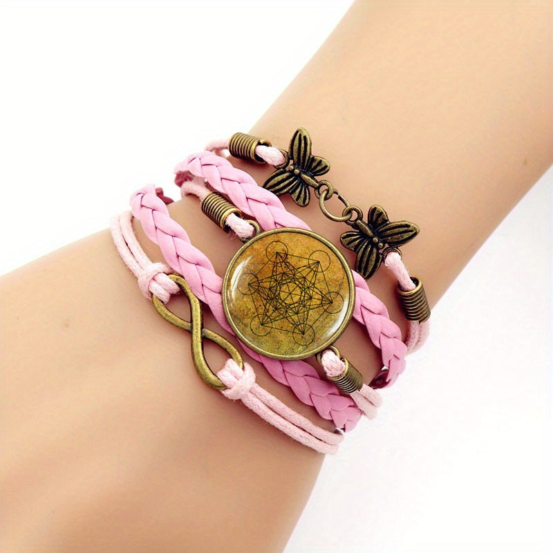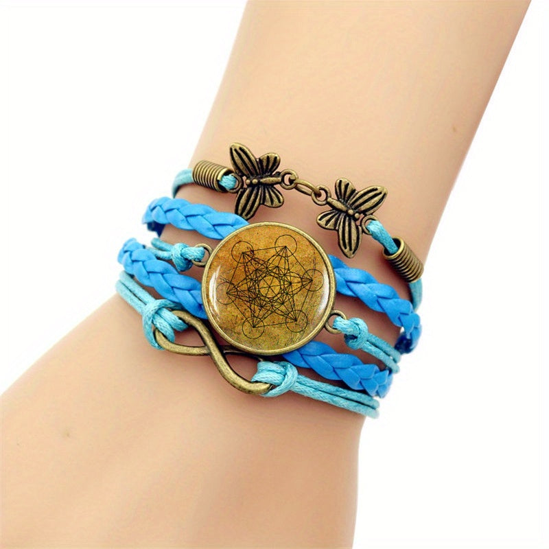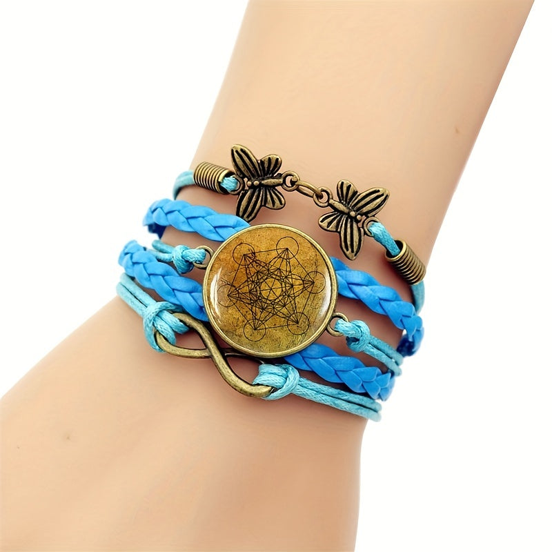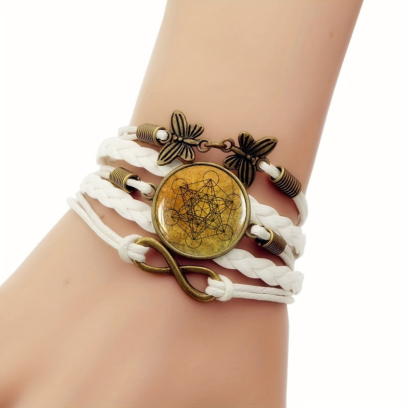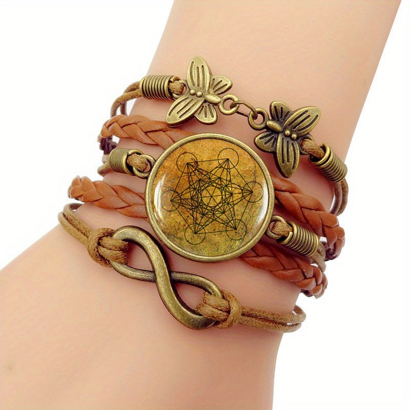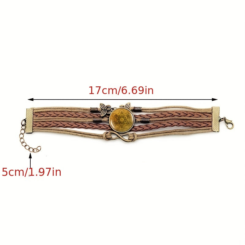 Enhance your style with this fashionable bracelet featuring Metatron's Cube design and gemstone accent. The retro-style leather adds a unique touch to your look.