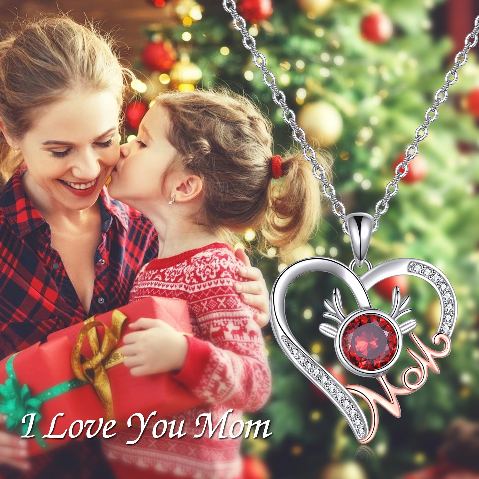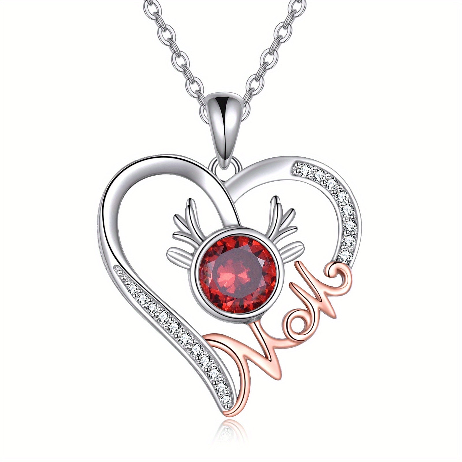 Mom Necklace Sterling Silver Red Zirconia Elk Heart Christmas Birthday Jewellery