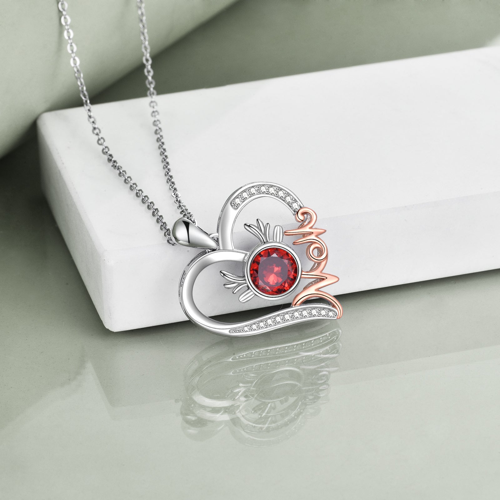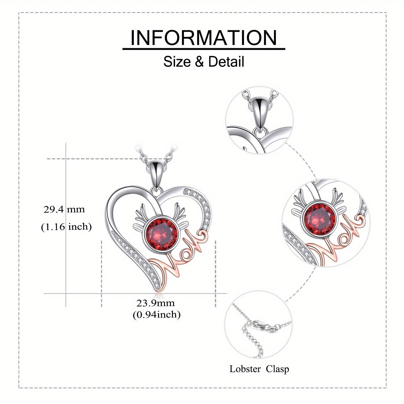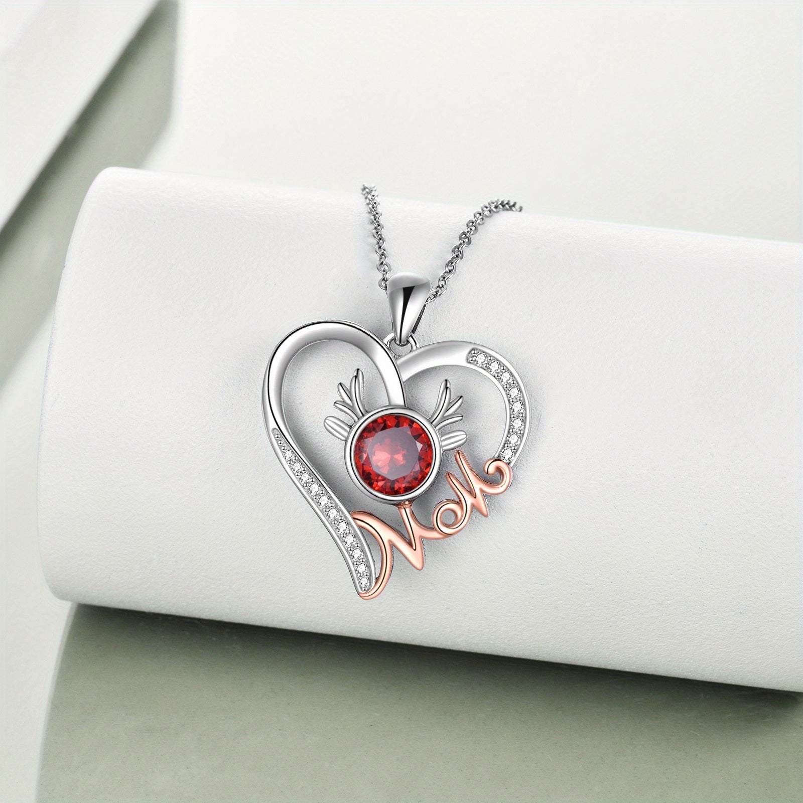 This elegant mom necklace features a sterling silver elk heart pendant with a red zirconia stone, making it the perfect Christmas or birthday gift for your mom or grandmother.