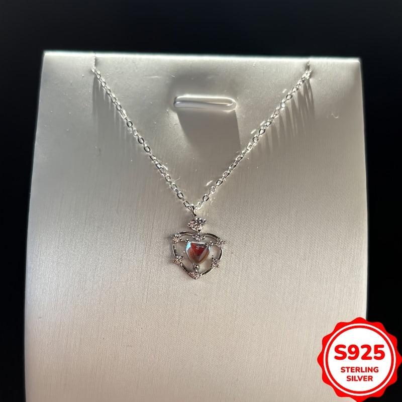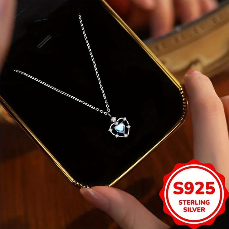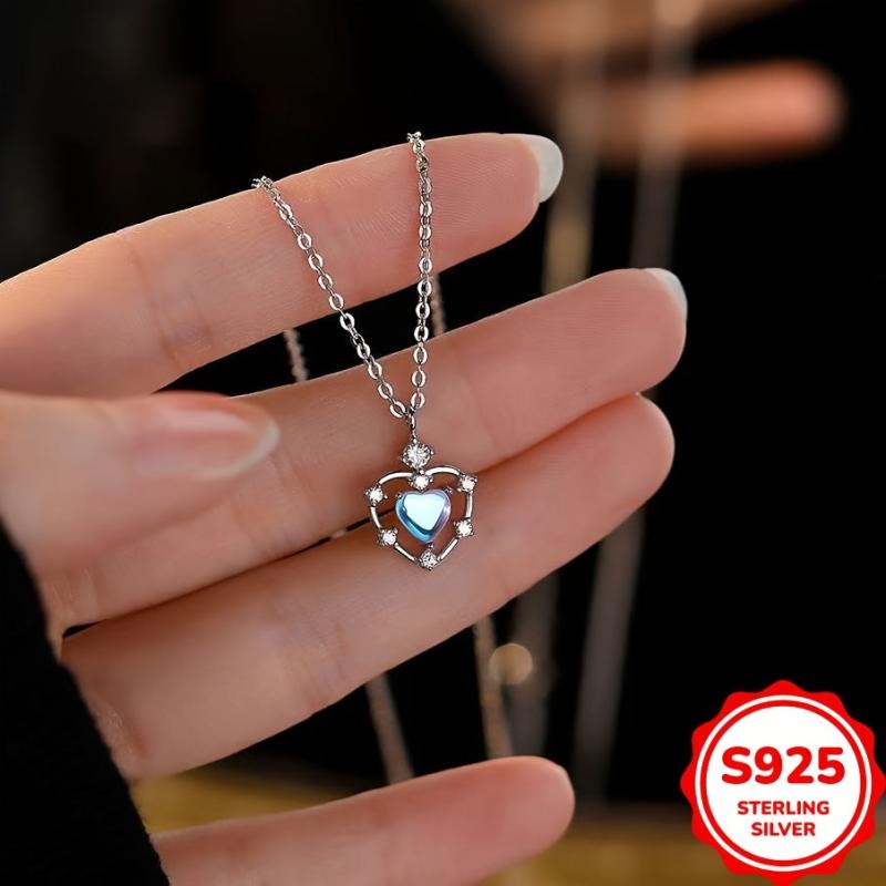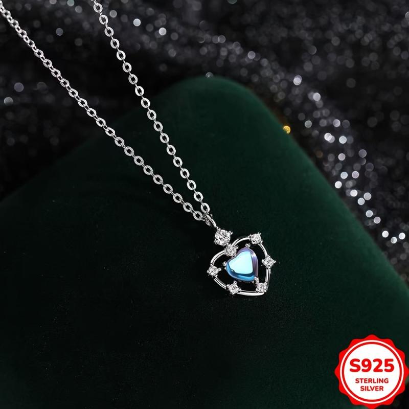 Dazzle at parties or music festivals with this 2g Moonstone Heart Pendant Necklace featuring a collarbone chain made of high-quality S925 Sterling Silver.