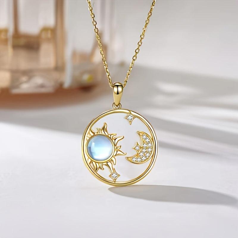 Moonstone Lily Shell Sun Moon Star Pendant Necklace Gift for Girlfriend