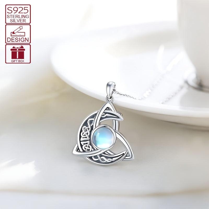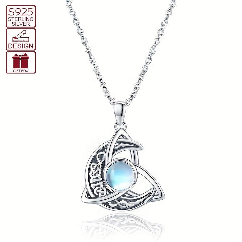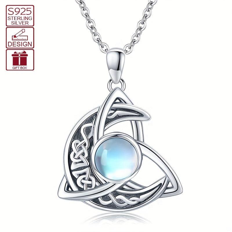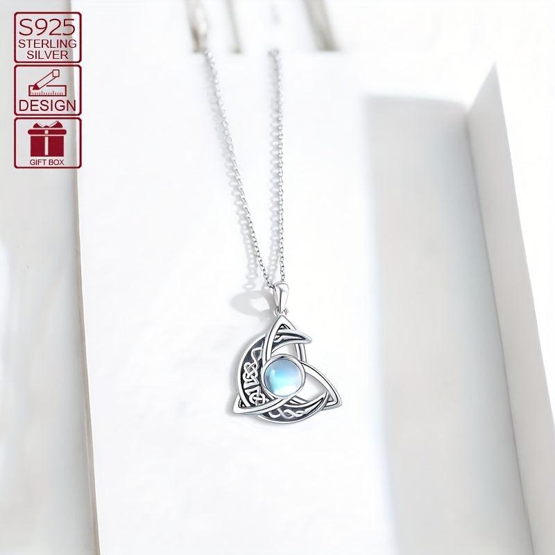 Elegant women's necklace with a moonstone pendant crafted from S925 sterling silver and adorned with a vintage Thai silver moon symbol. Hypoallergenic and stylish, perfect for everyday wear.