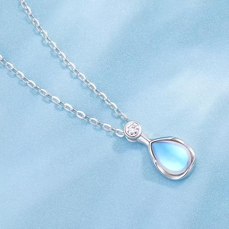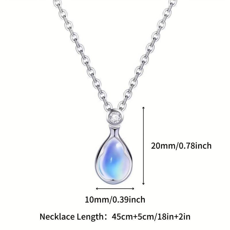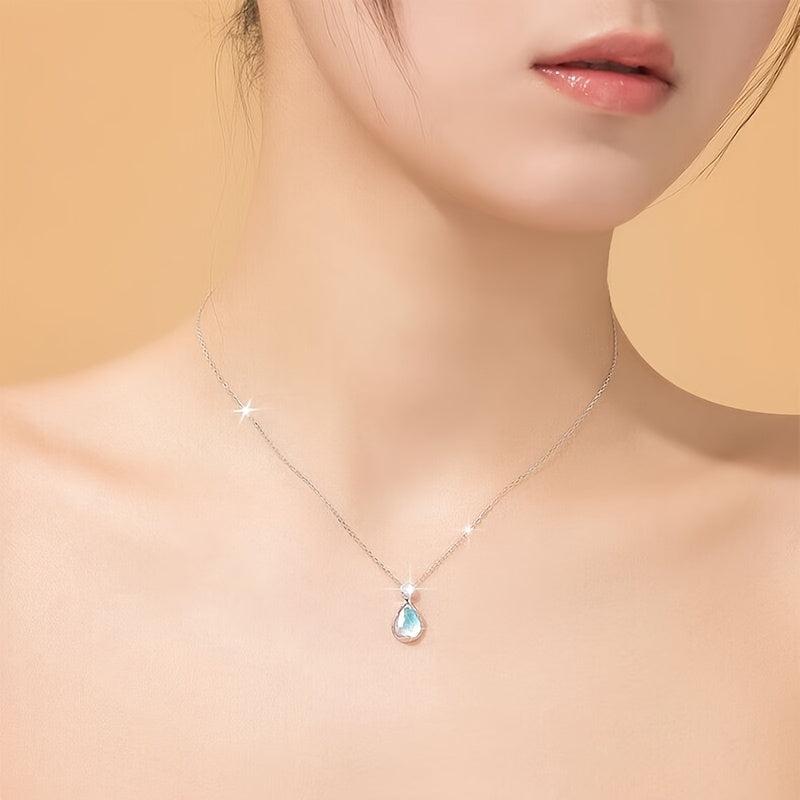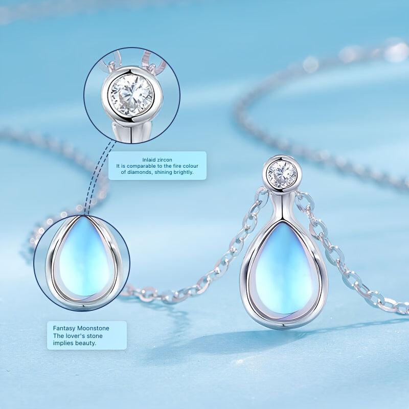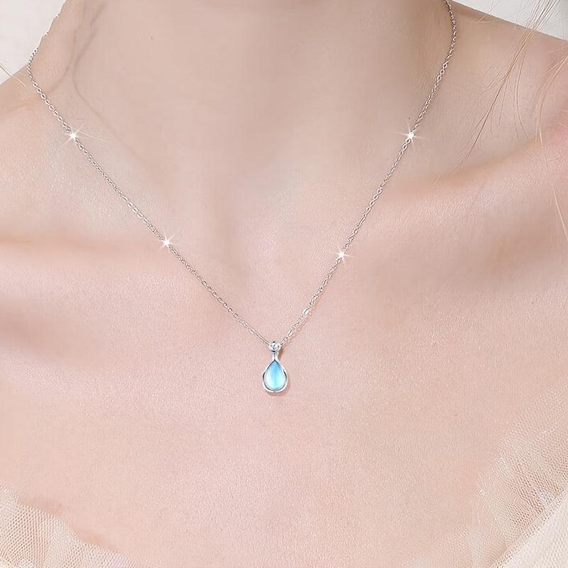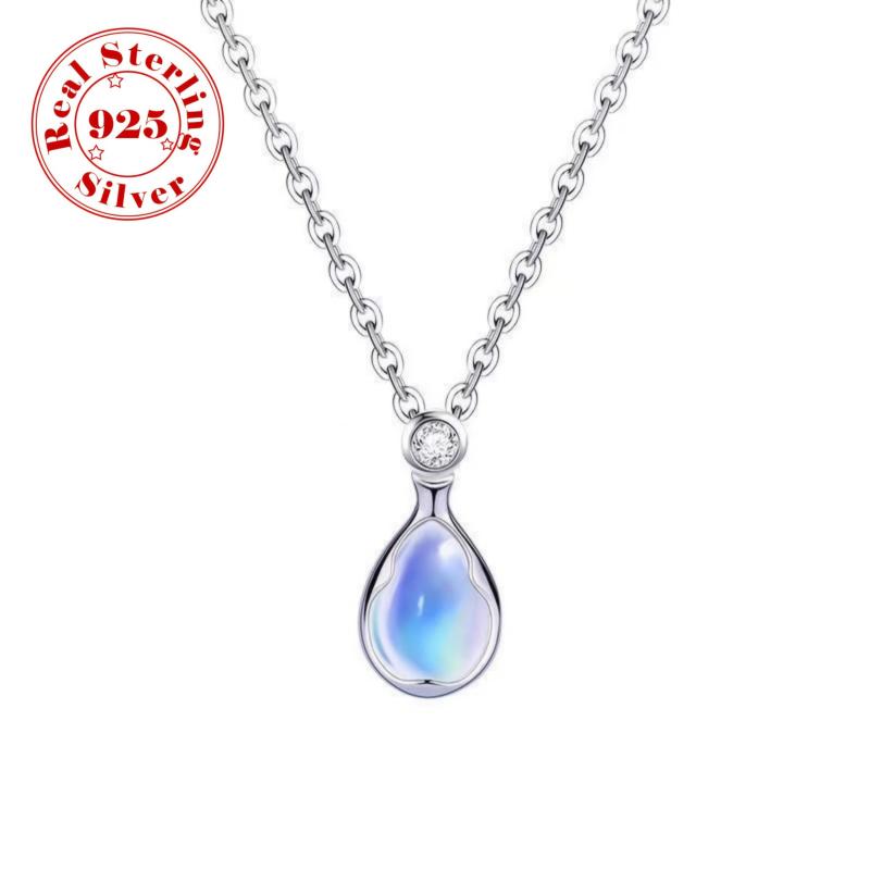 Elegant S925 silver necklace featuring a teardrop moonstone pendant with sparkling synthetic zirconia. Perfect gift for her, suitable for all-season wear. Lightweight at 4g, ideal for daily use.
