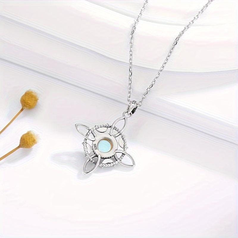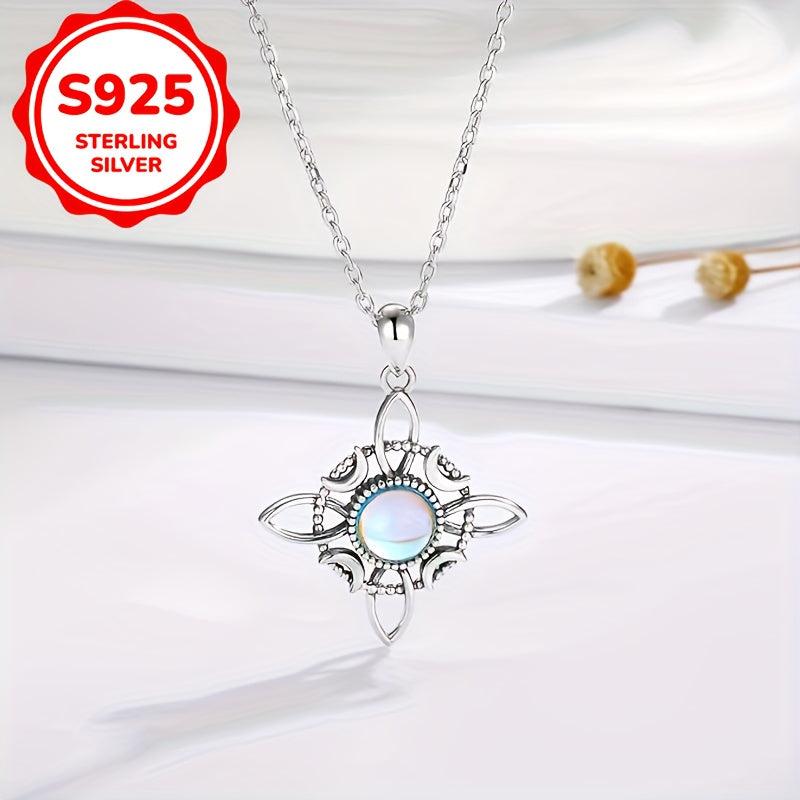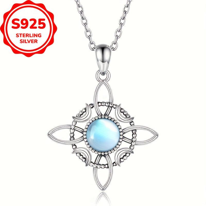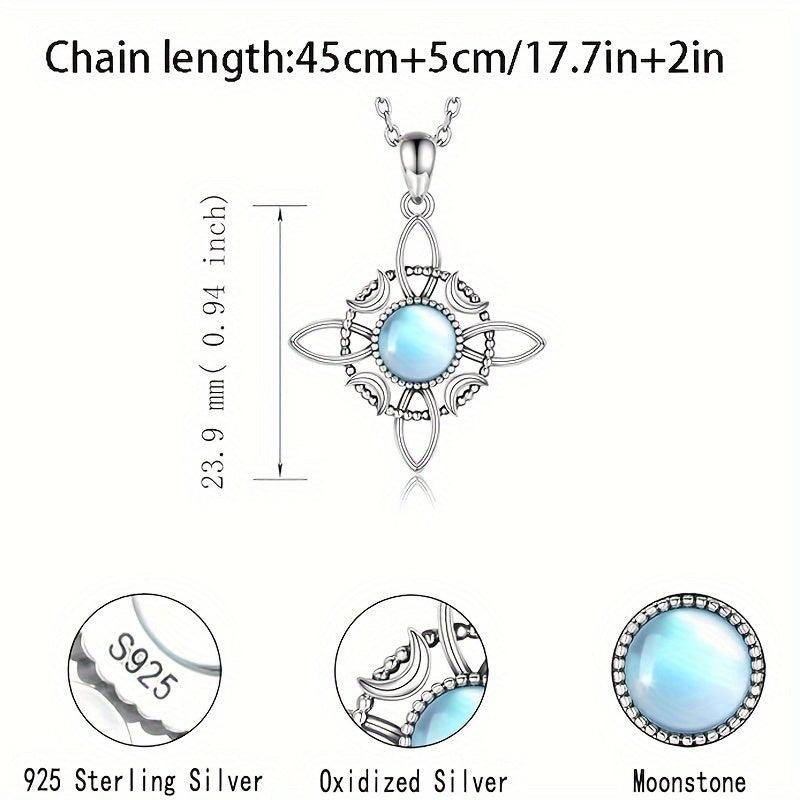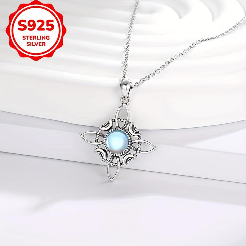 Elegant women's pendant necklace crafted in hypoallergenic S925 silver with a witch knot design and moonstone. This high-quality jewelry piece weighs 3.2 grams, making it a perfect gift for any occasion.