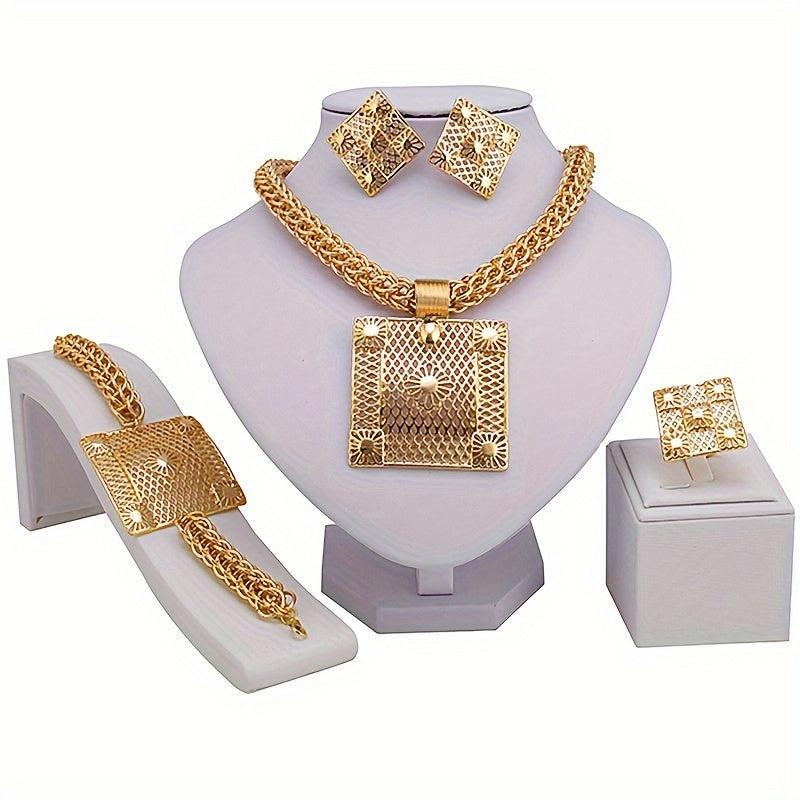 • Includes necklace, earrings, bracelet, and ring