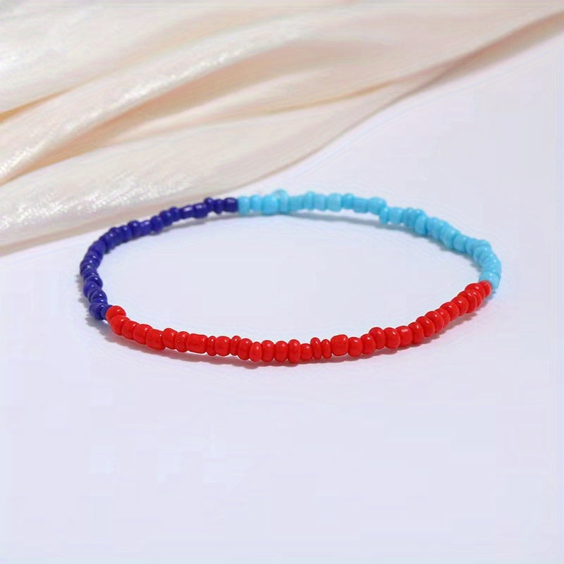 Add a pop of color with this multicolor rice beads anklet, perfect for summer beach outfits. Boho style foot jewelry that will enhance your look.