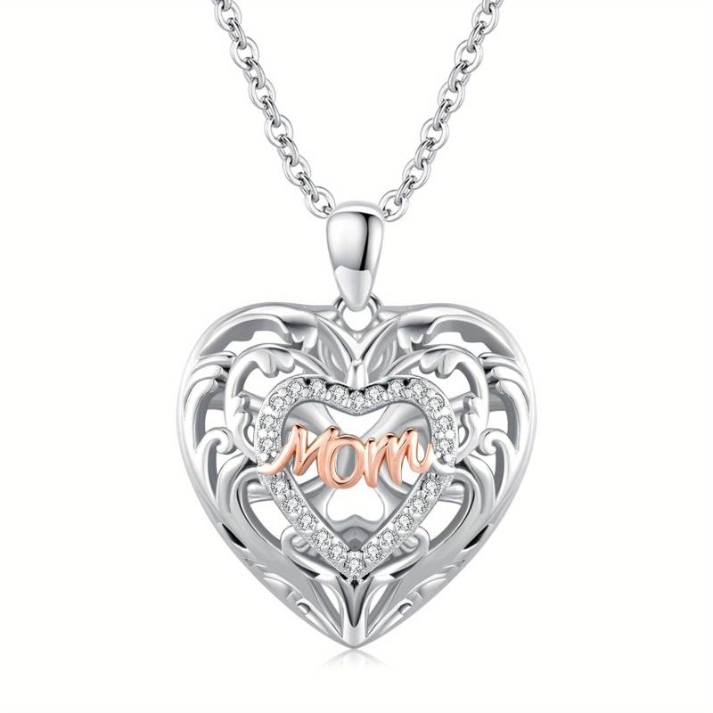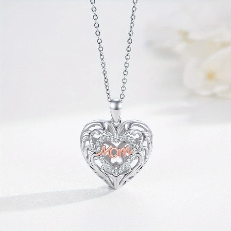 This beautiful Mum necklace is made of 925 sterling silver, featuring a heart-shaped pendant. It's the perfect gift for your mom on her birthday or any special occasion.