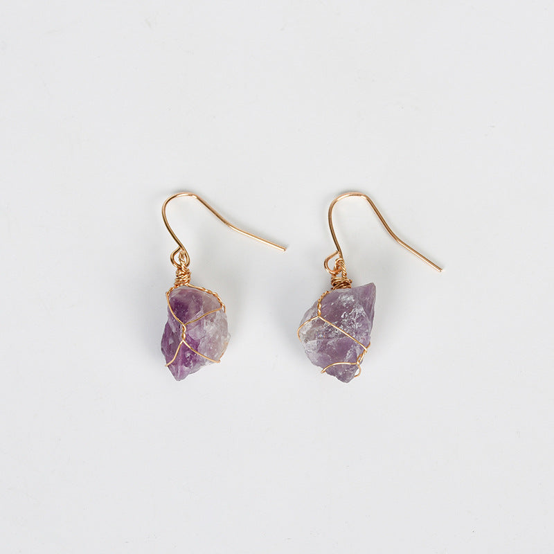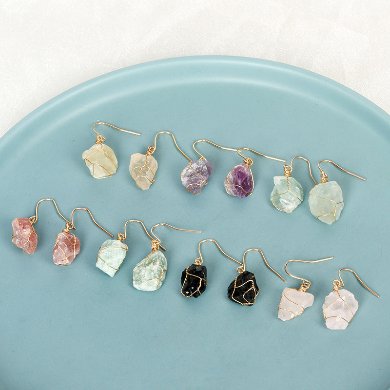 These stunning natural crystal earrings feature rough stone pendants, making them unique birthstone accessories for women.