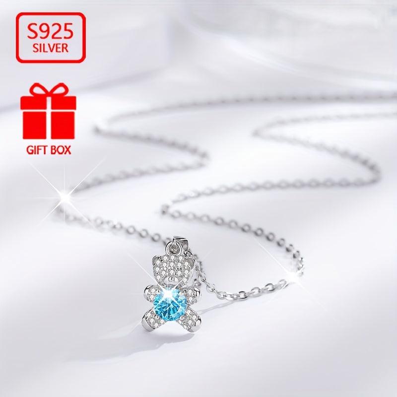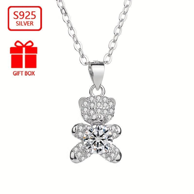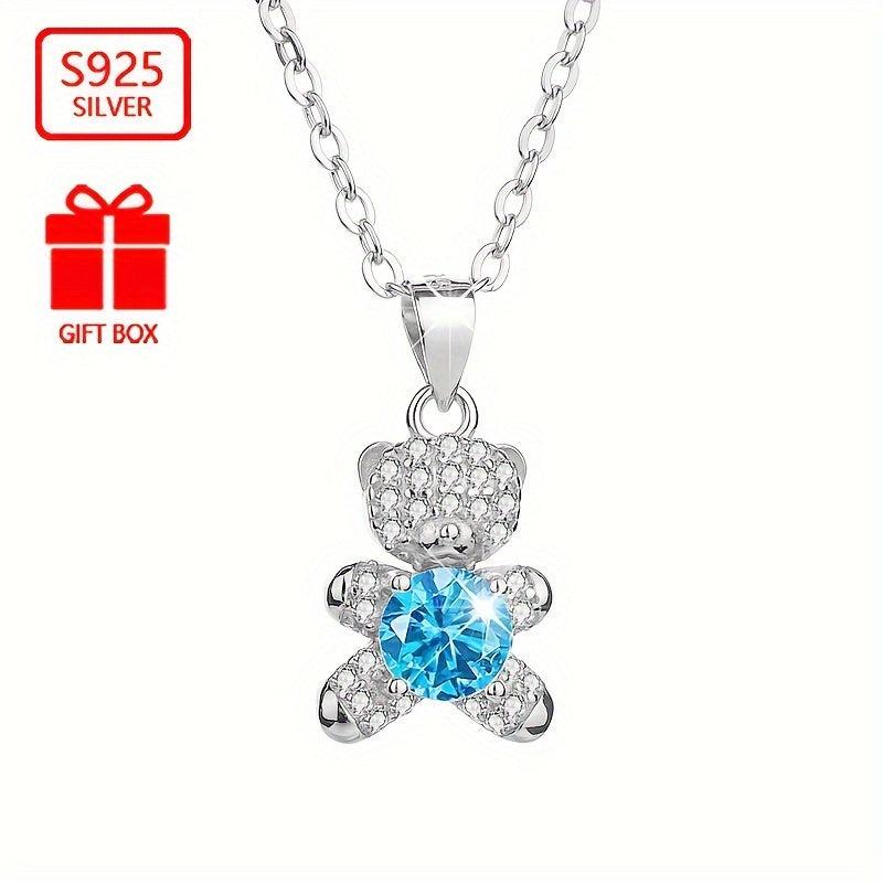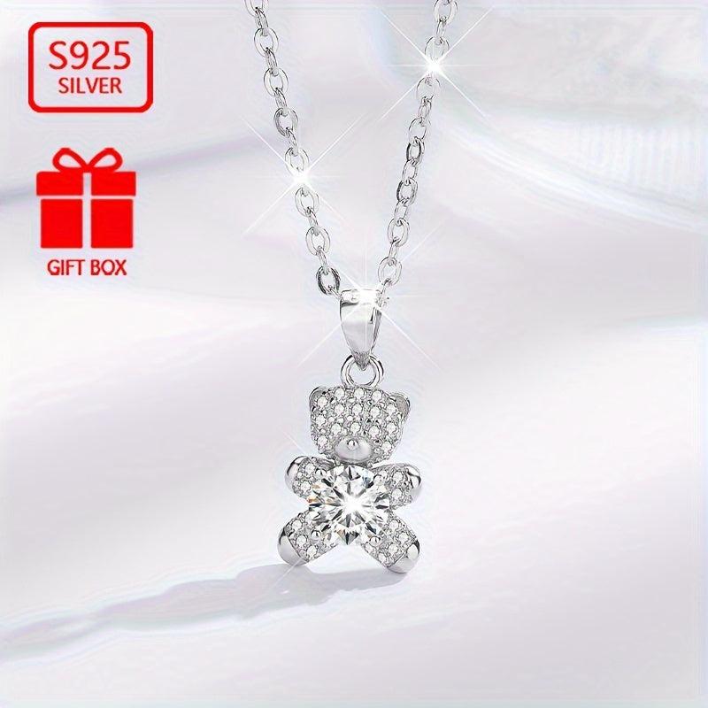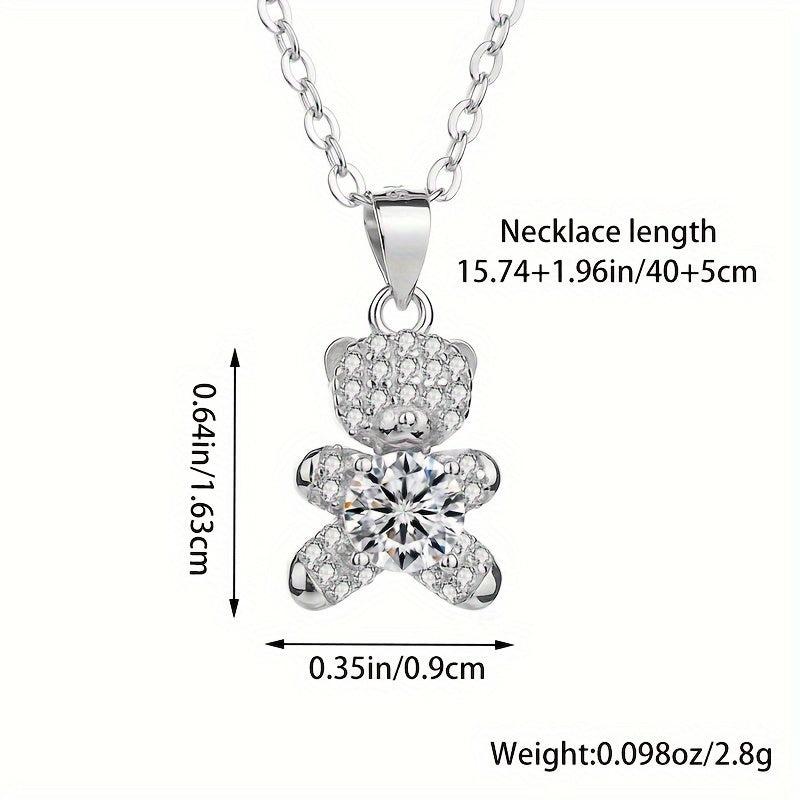 This adorable bear cub pendant necklace is made of 925 sterling silver and features synthetic zirconia stones. It is a perfect accessory for any outfit, adding a touch of charm and elegance.