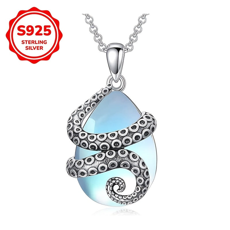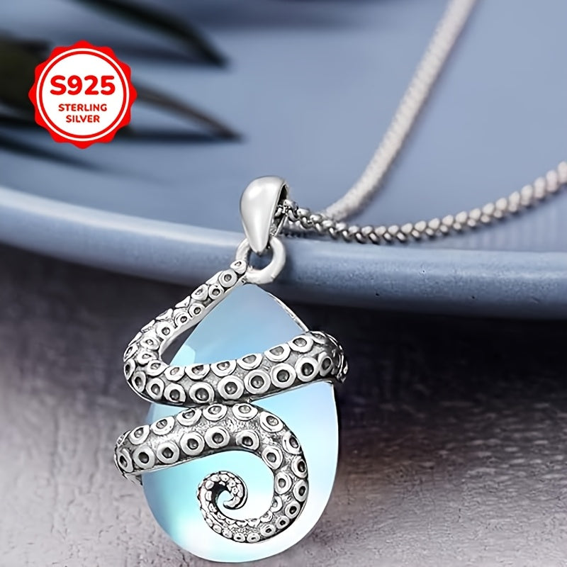 This exquisite pendant necklace features an octopus tentacle design in S925 silver with a fine moonstone. It is hypoallergenic and perfect for women who appreciate high-quality jewelry.