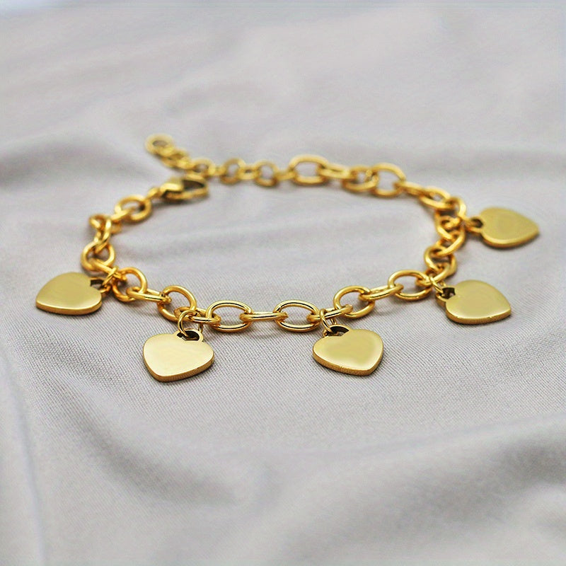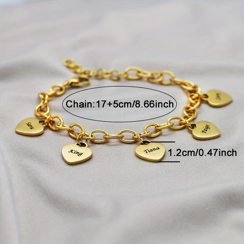 Beautifully crafted stainless steel bracelet with a custom engraved golden heart charm and personalized charms. An ideal gift for mothers.