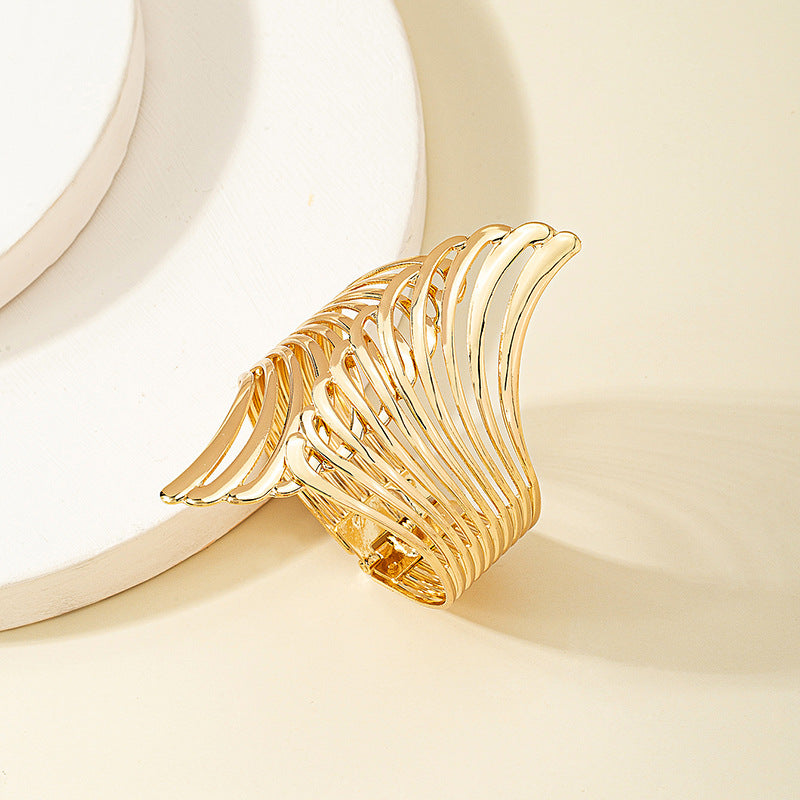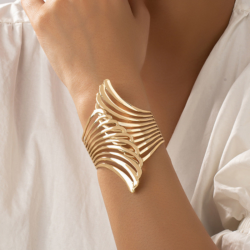 Add a touch of edgy charm to your look with this punk style hollow bangle bracelet. It features a unique design that makes a bold statement.