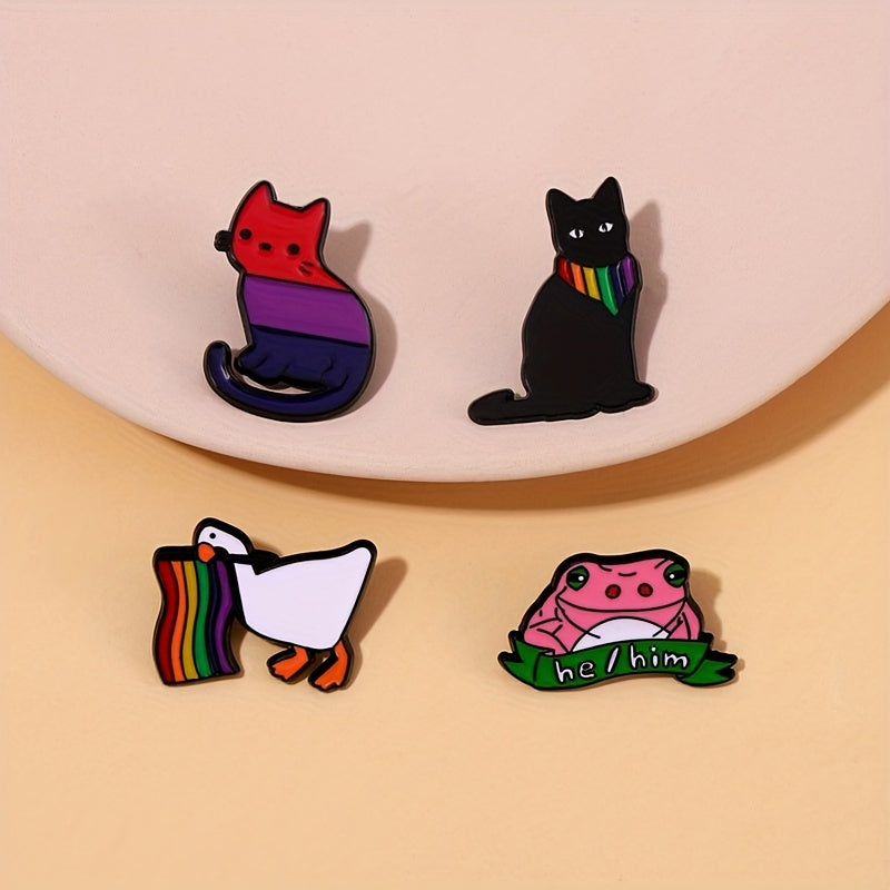 This colorful brooch features a quirky design of a rainbow cat duck, perfect for showing off your pride and humor. The drip oil enamel adds a unique touch to your outfit.