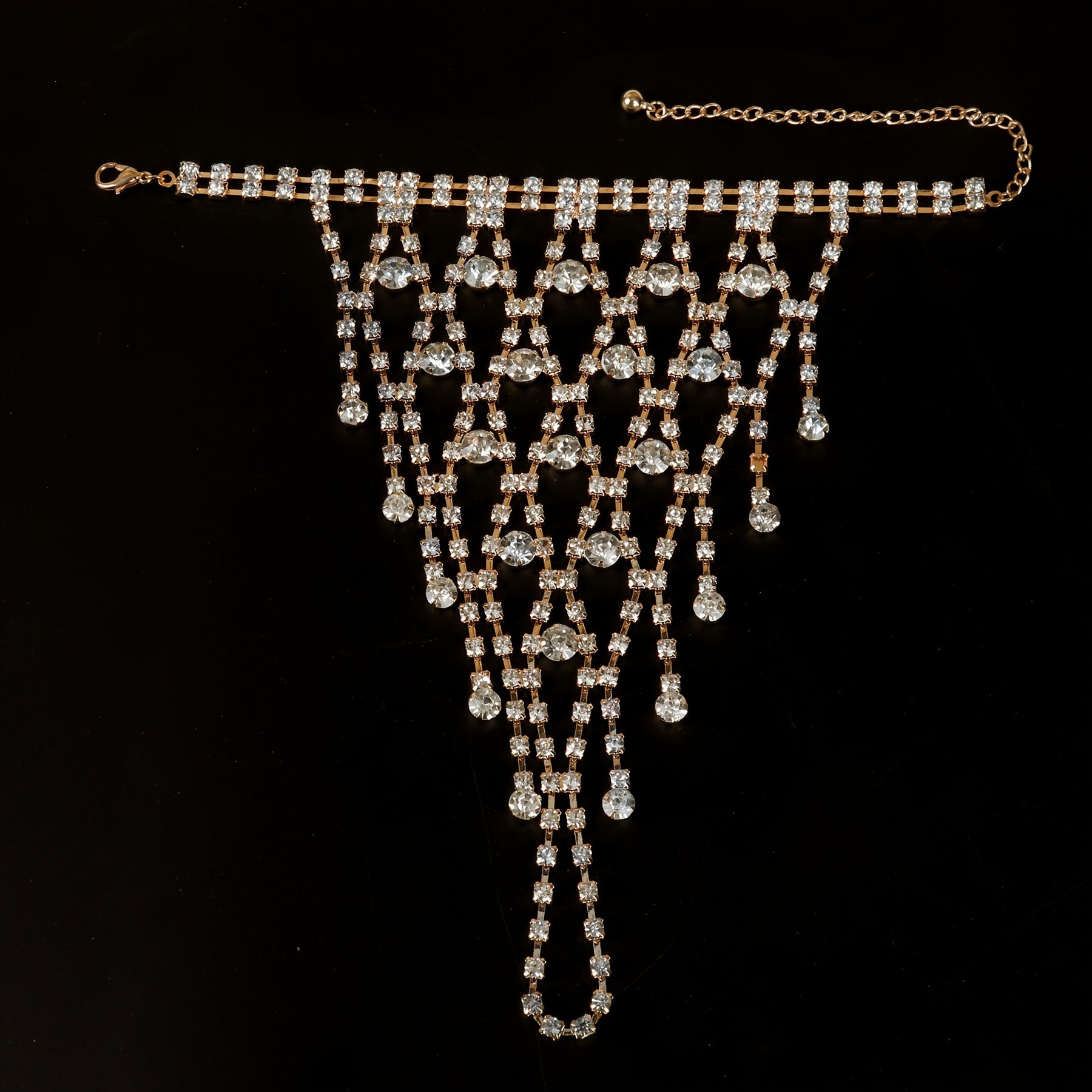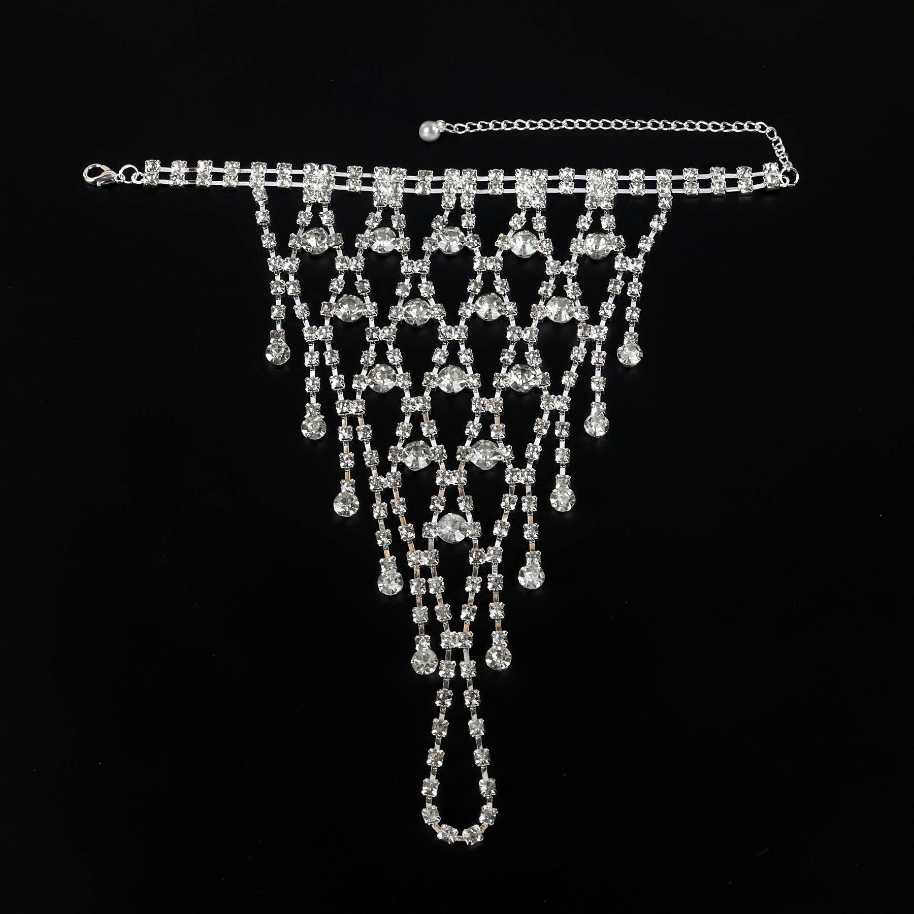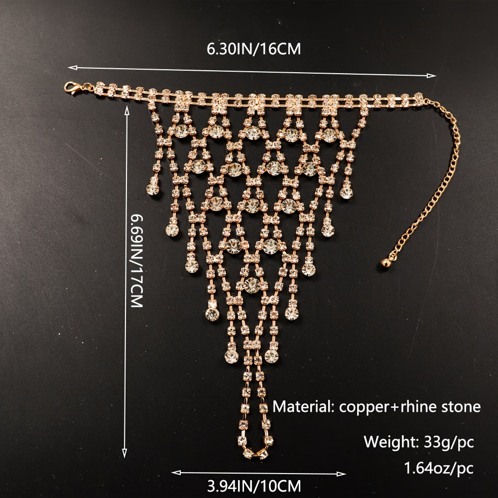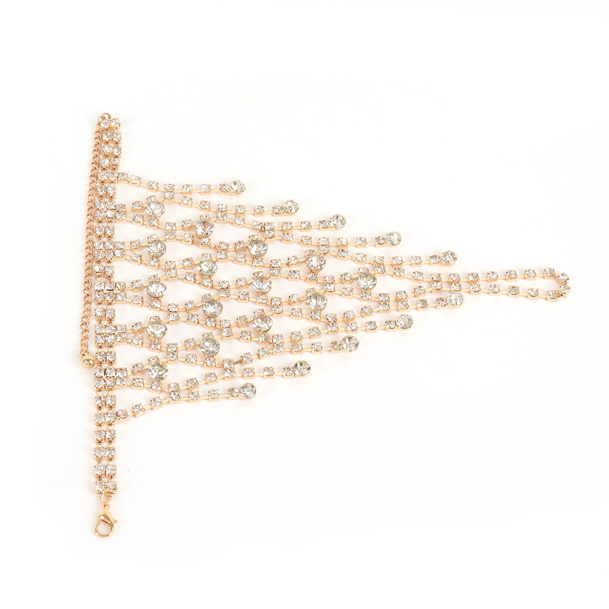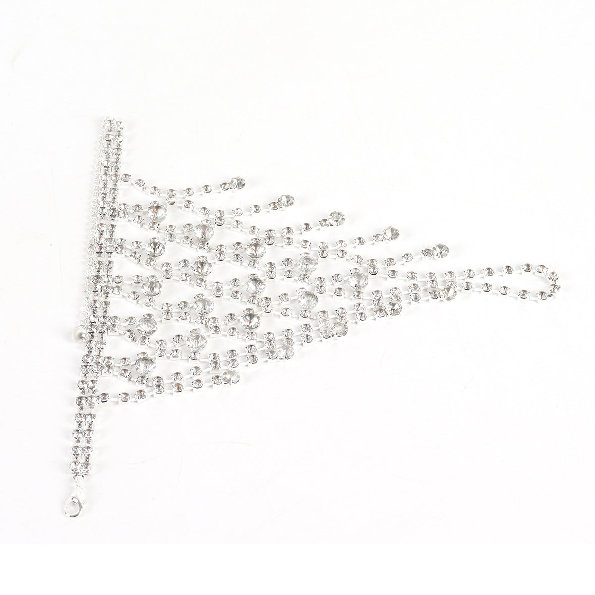 This stunning hand chain bangle features synthetic gemstones and crystals for a luxurious look. Perfect accessory for women and girls.