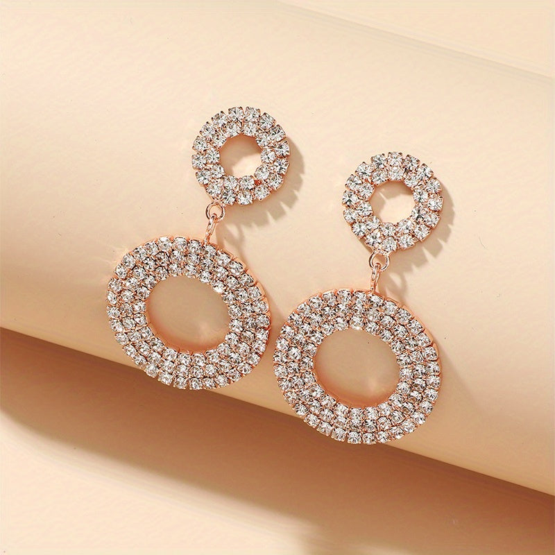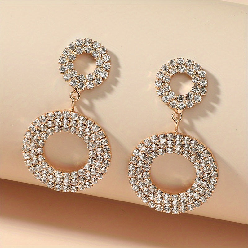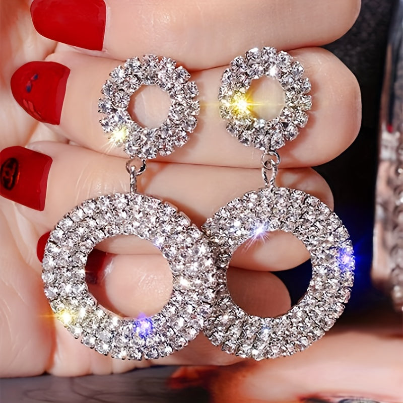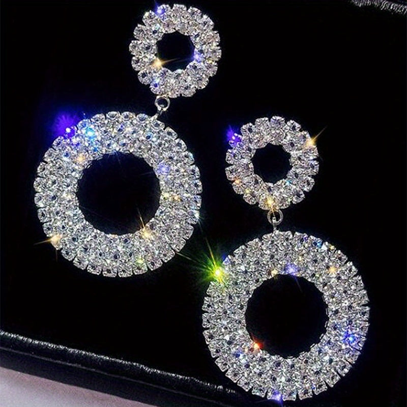 These exquisite earrings are perfect for brides, parties, and dinners. Made with full rhinestones, they add sparkle to any outfit.