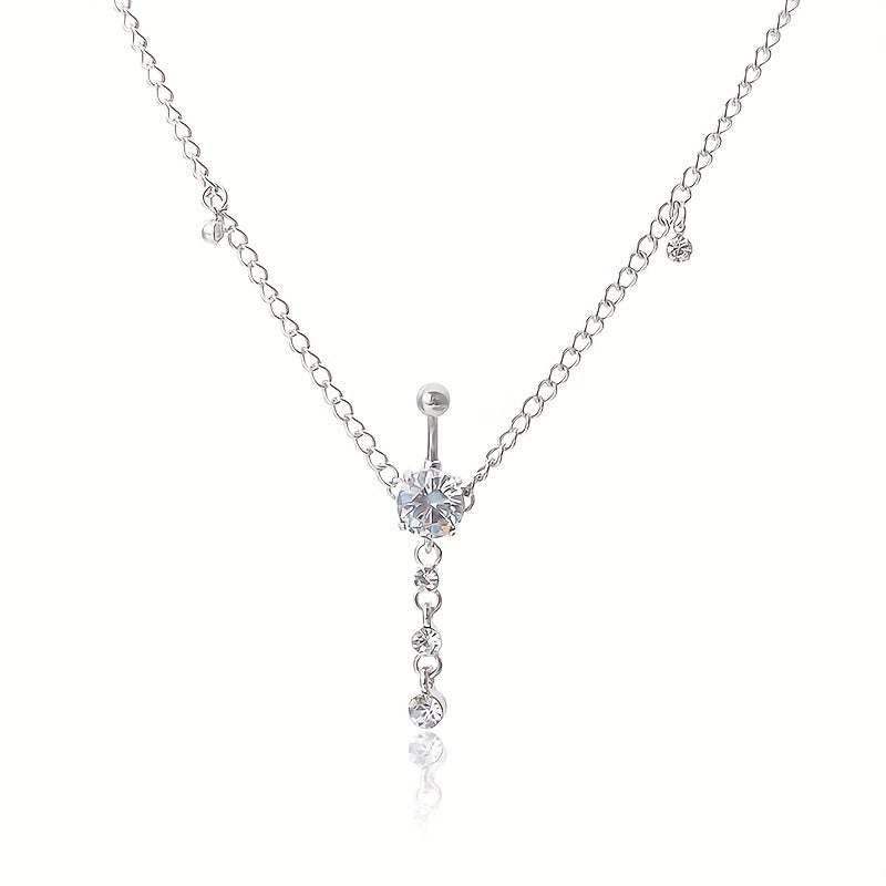 Stylish and sexy belly button ring with rhinestone dangle and waist chain pendant. Made of high-quality stainless steel. Perfect for women who want to add a touch of glam to their body jewelry collection.