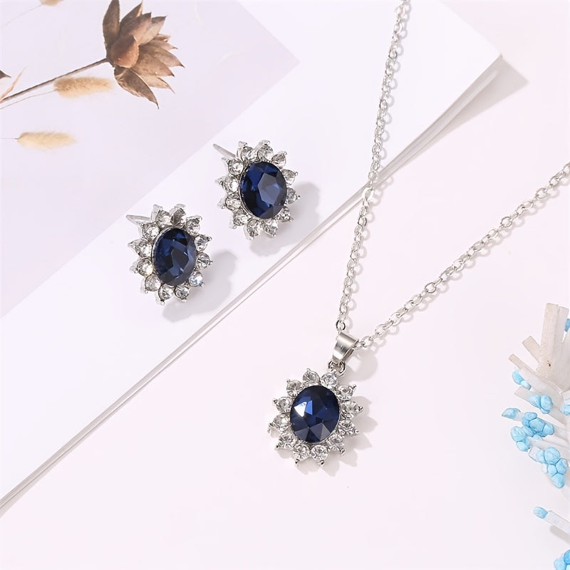 • Charming rhinestone flower necklace set