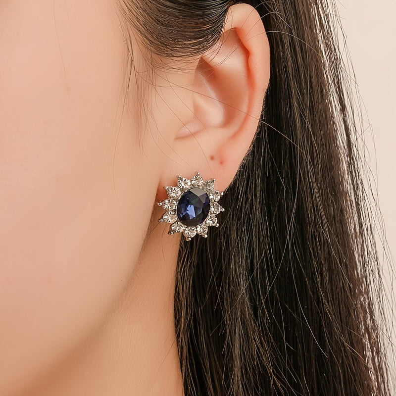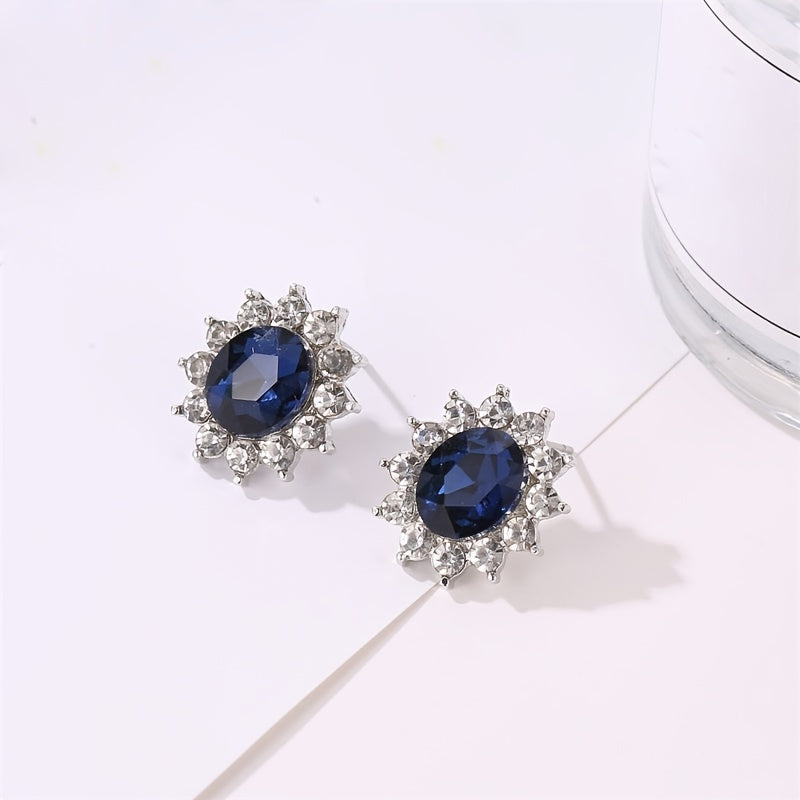Rhinestone Flower Necklace Set with Stud Earrings