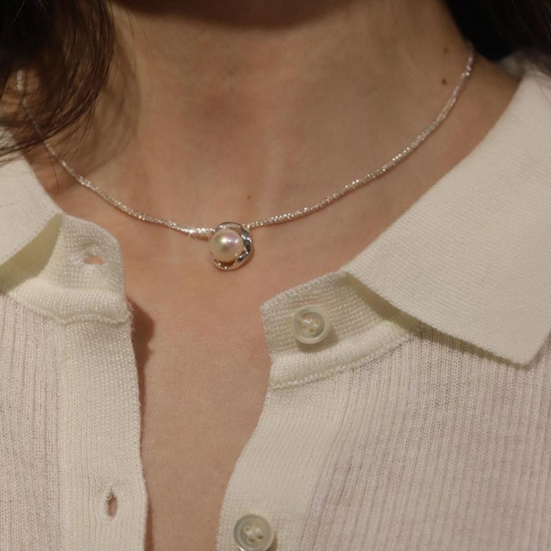 S925 Pure Silvery Pearl Necklace for Women, Elegant Design for Various Occasions