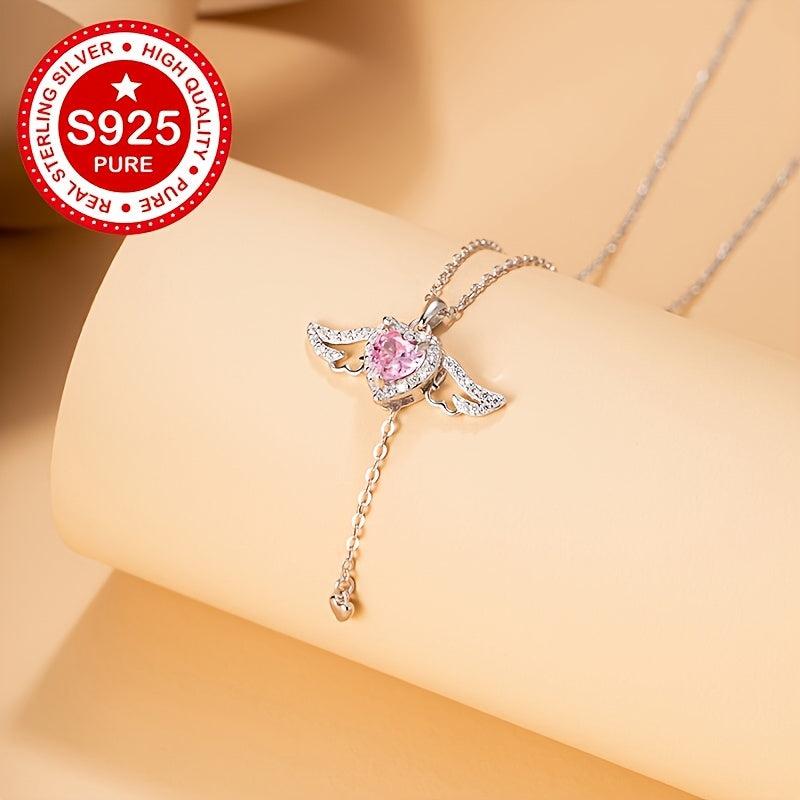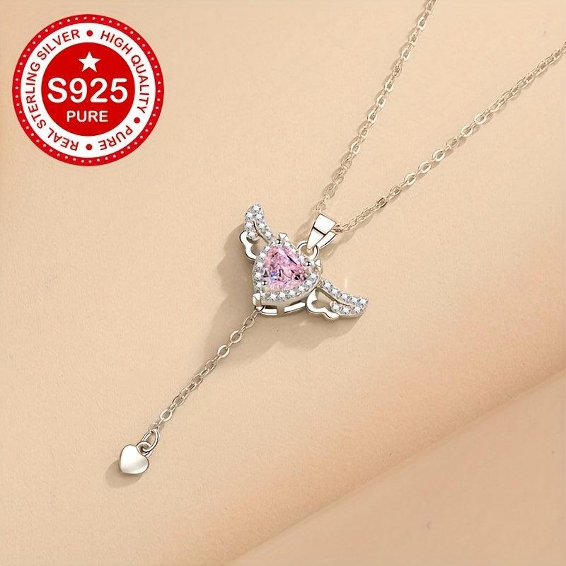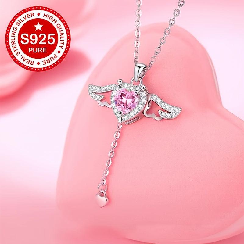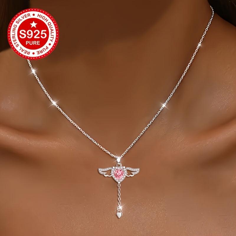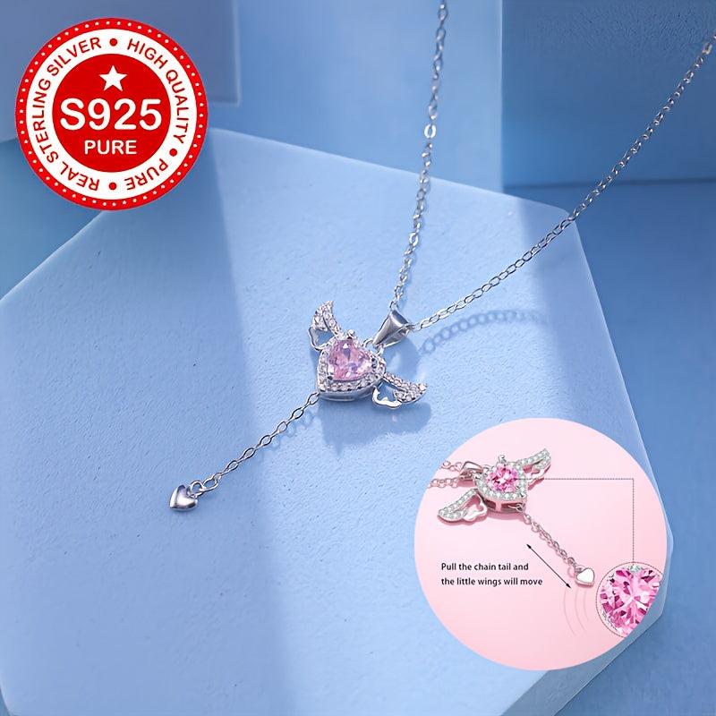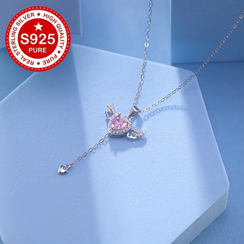 S925 Silver Cupid's Heart Necklace with Zirconia Inlay