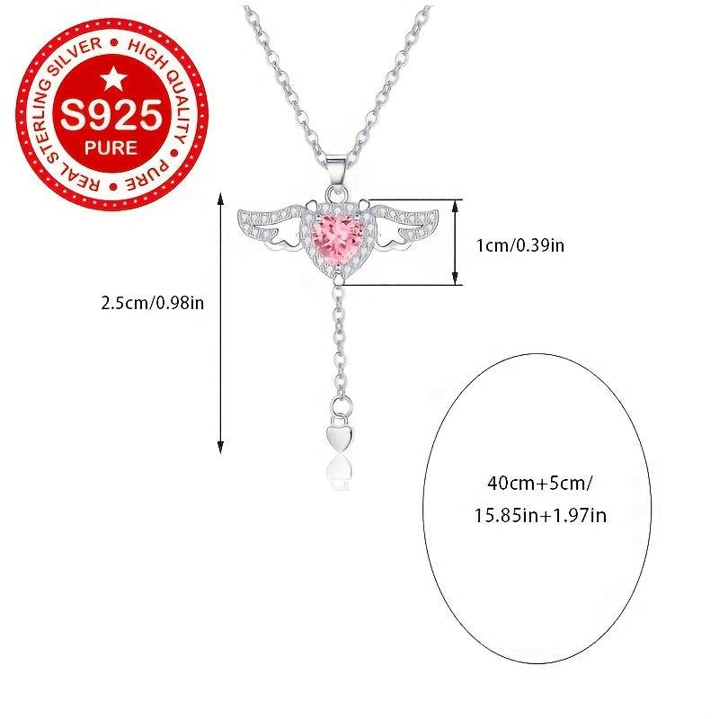 Adorn yourself with this high-end hypoallergenic necklace featuring a heart with synthetic zirconia inlay and love wings symbol, perfect for expressing romance.