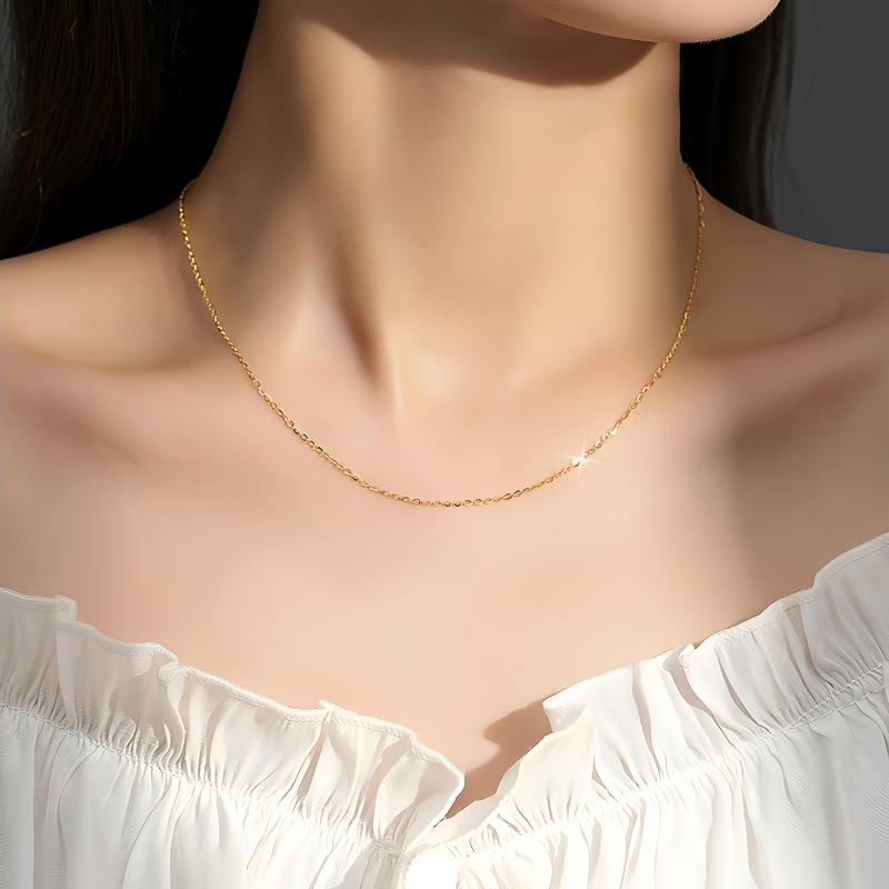 Timeless 925 silver chain with golden O-shaped links. Versatile and stylish, perfect for everyday wear.