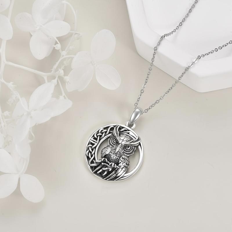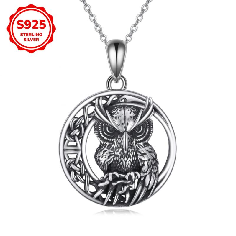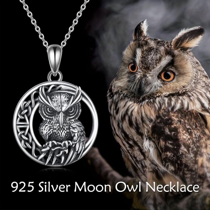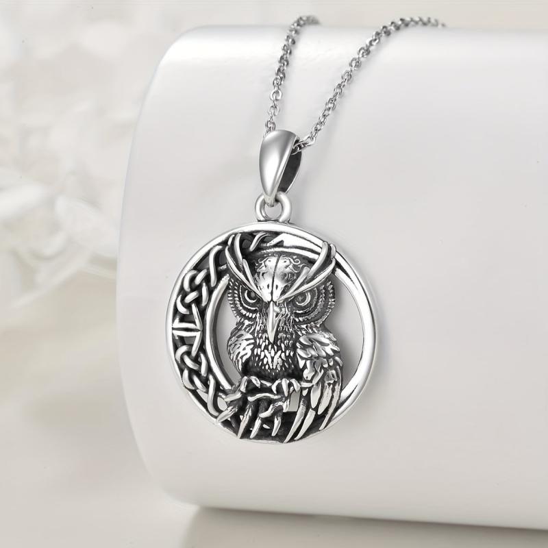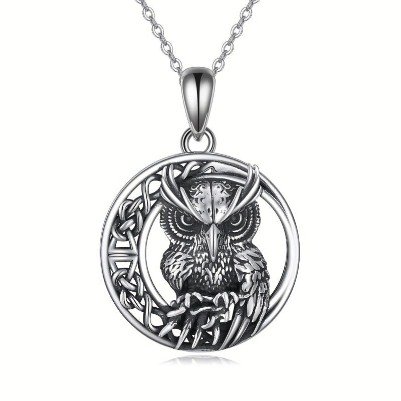 S925 Silver Retro Owl Pendant Necklace with Celtic Knot Infinity Symbol