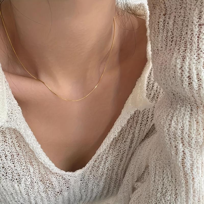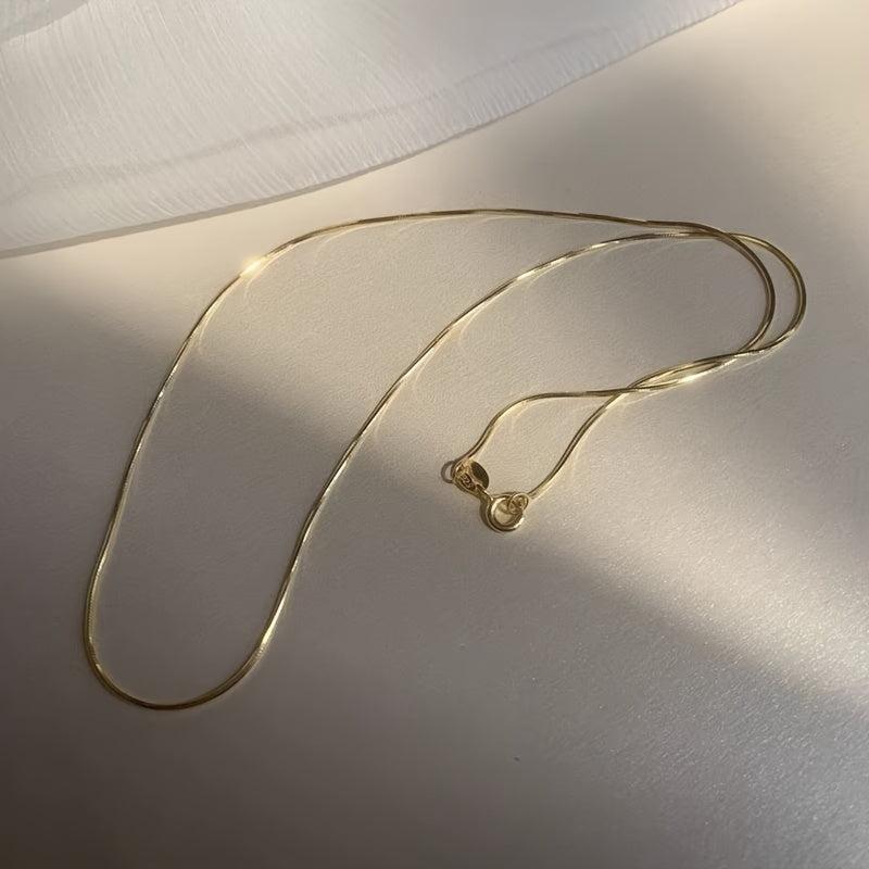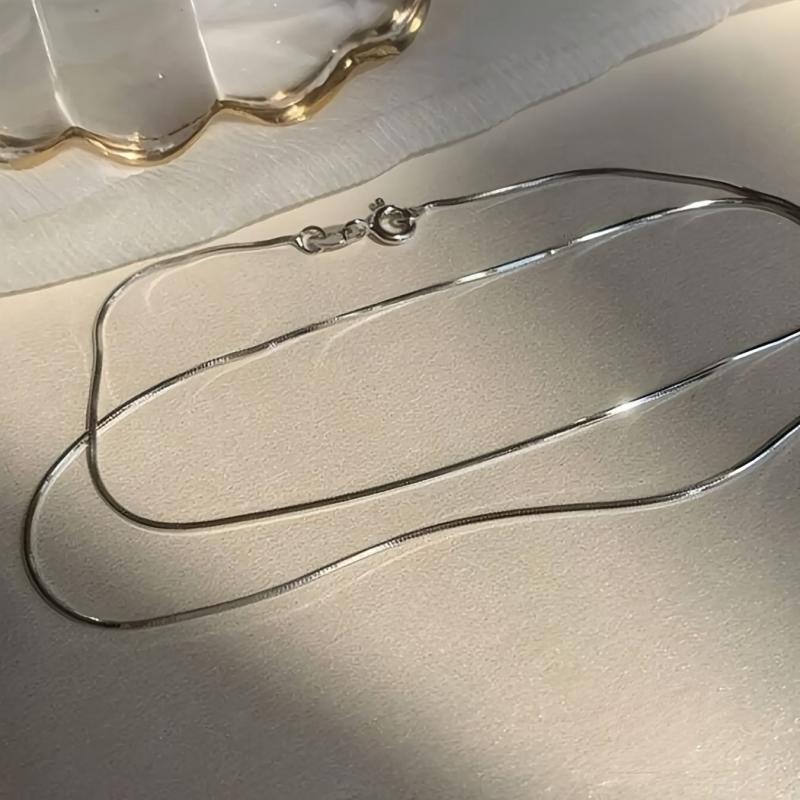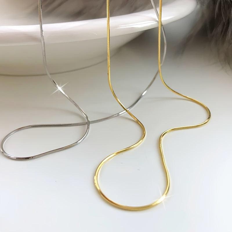 This S925 silver snake bone chain is a versatile piece available in golden and silver colors. Perfect for everyday wear.