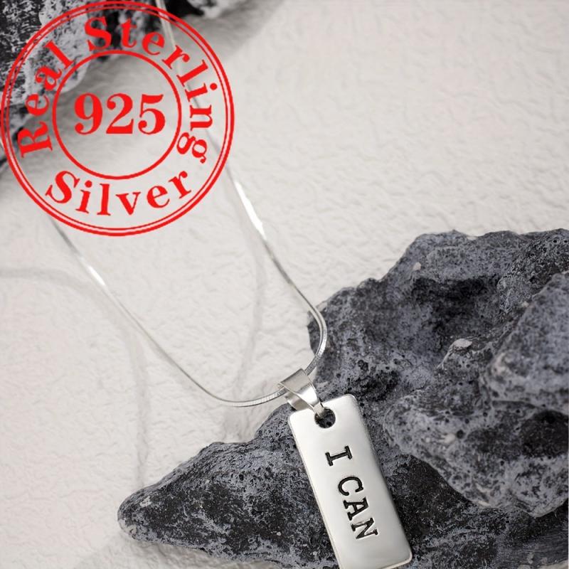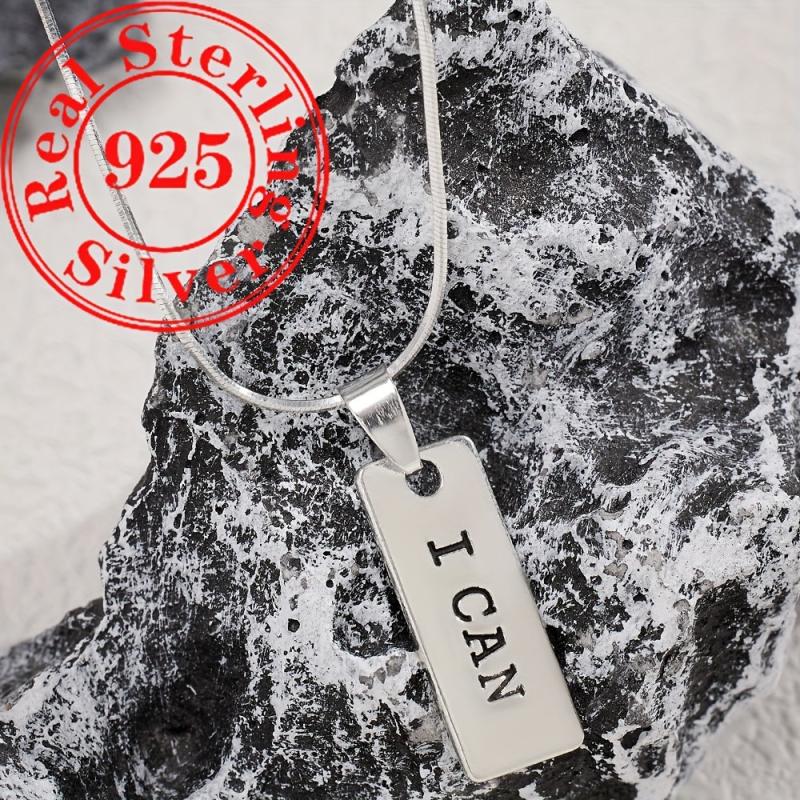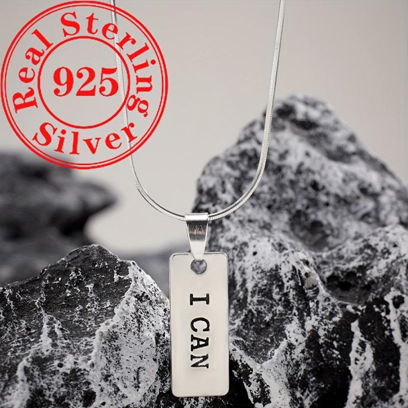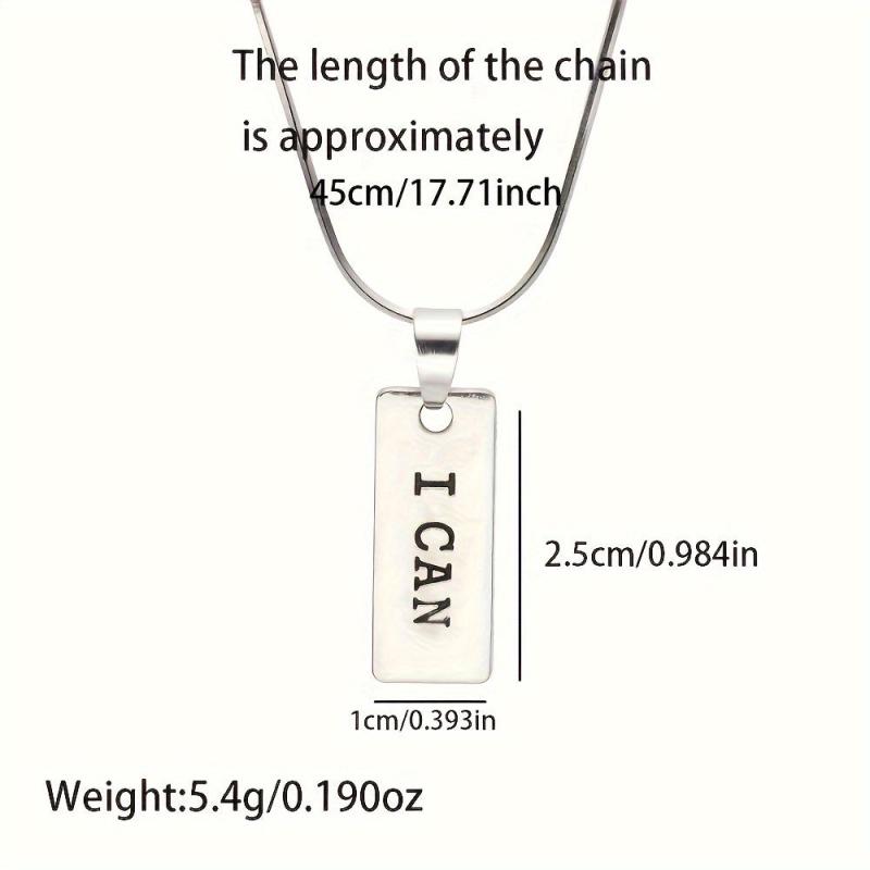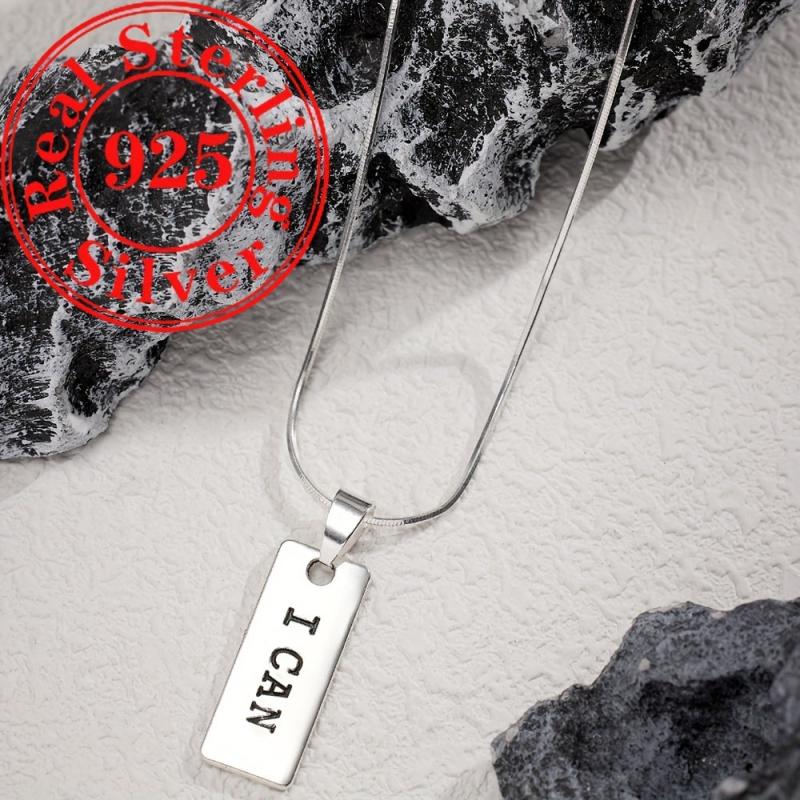 This unisex snake bone chain made of S925 silver is paired with a short pendant engraved with the empowering phrase 'I Can'. Perfect for couples to wear, weighing approximately 5.4g.