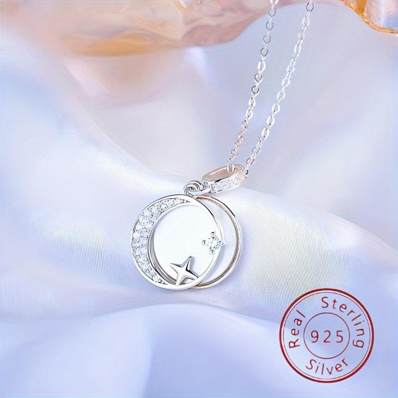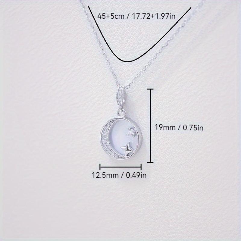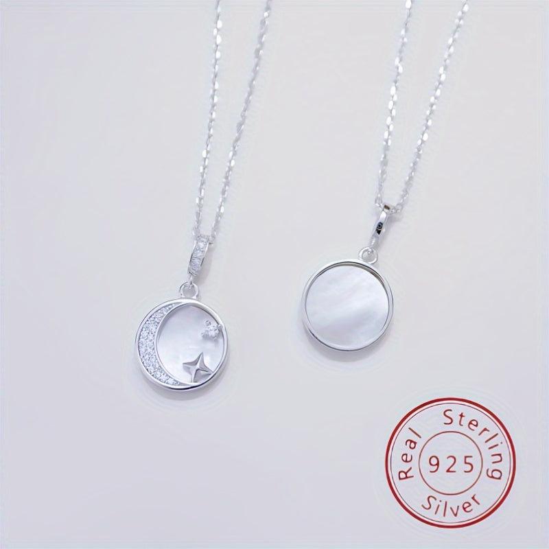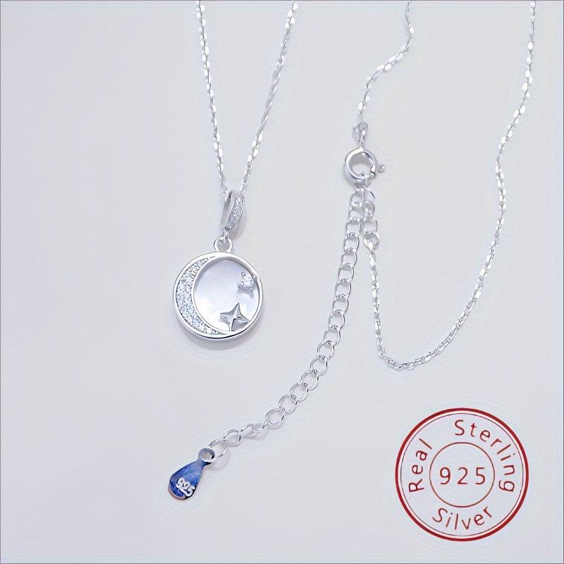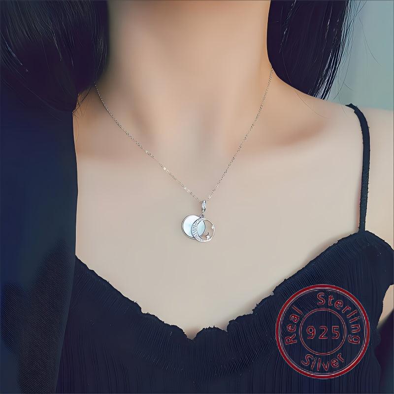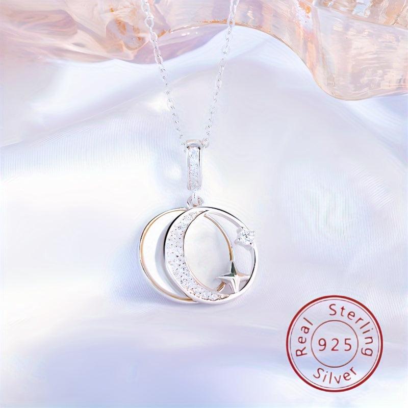 S925 Silver Star Moon Mother Of Pearl Pendant Necklace Gift