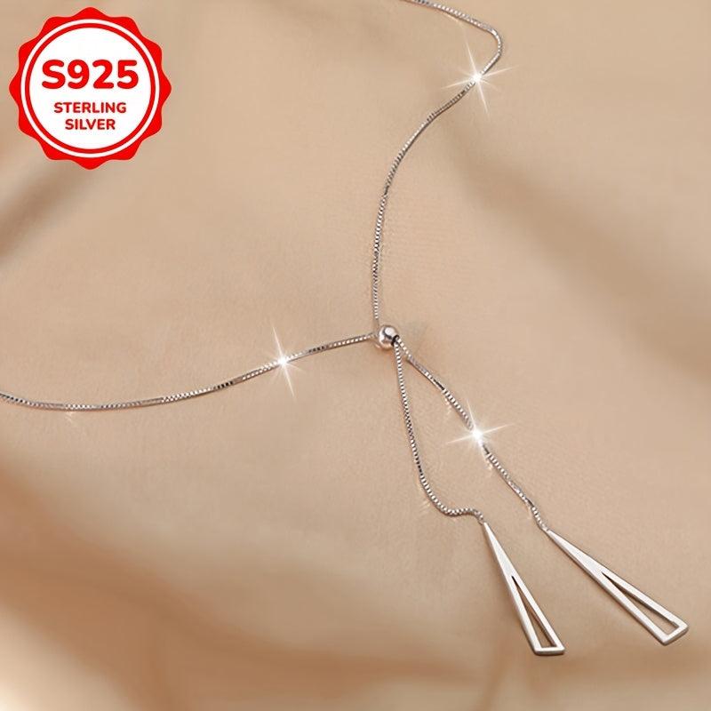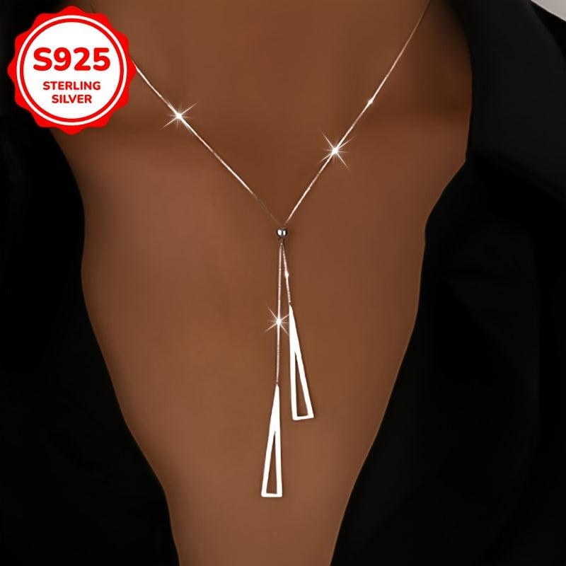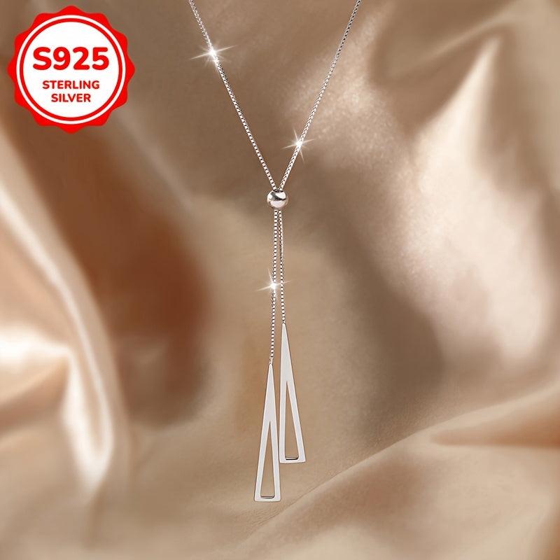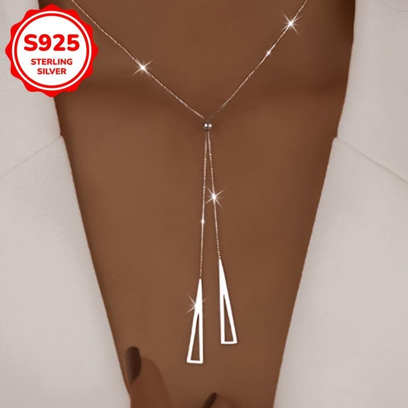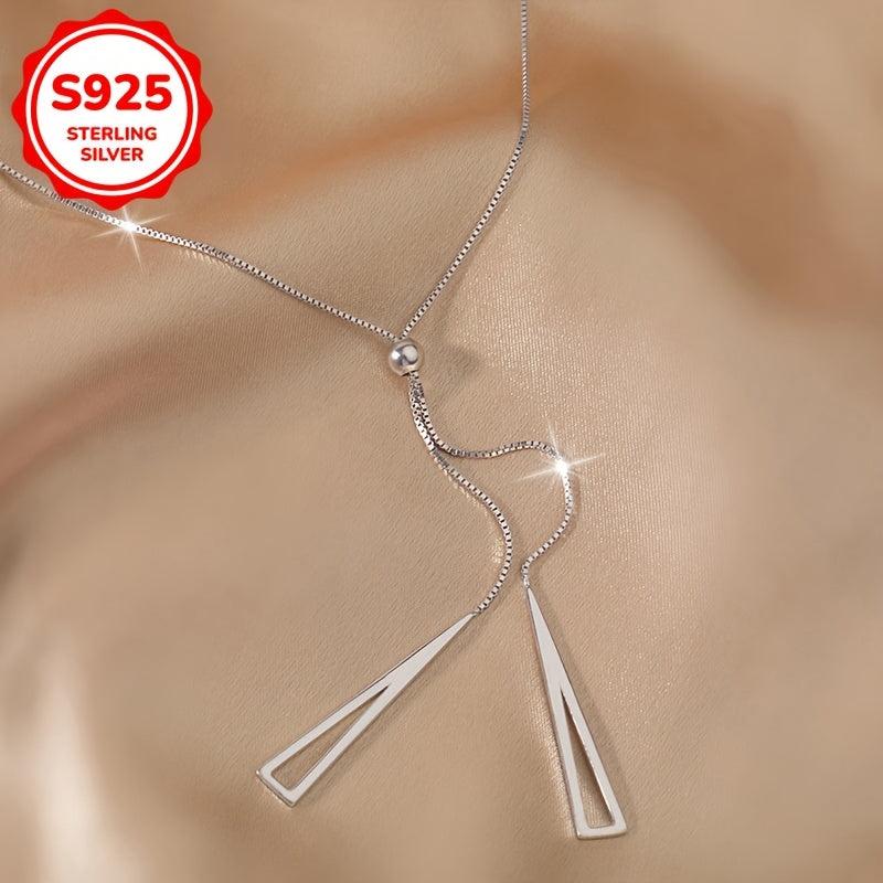 S925 Silver Women's Y Necklace w/ Minimalist Triangle