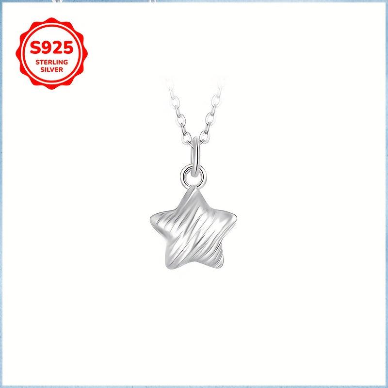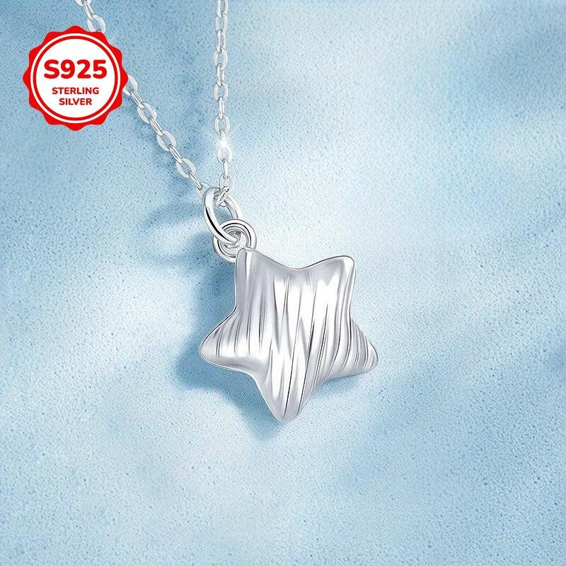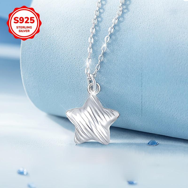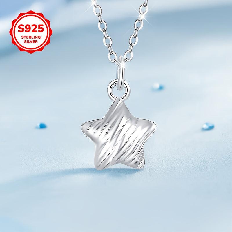 Elevate your look with this stunning S925 sterling silver star pendant necklace featuring a textured star design. Perfect for a dreamy, starry night out.