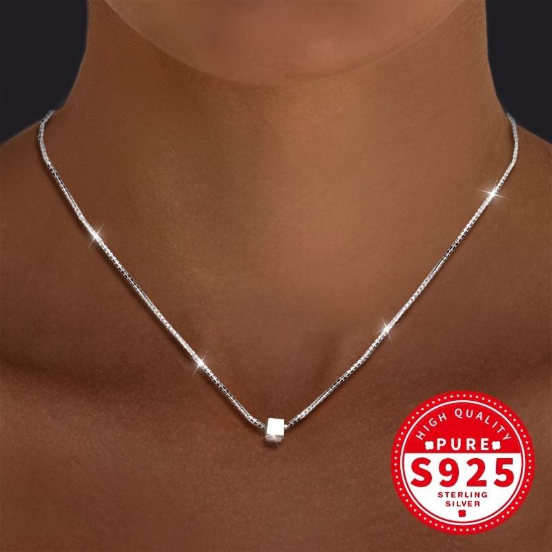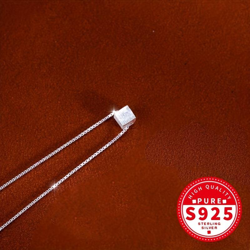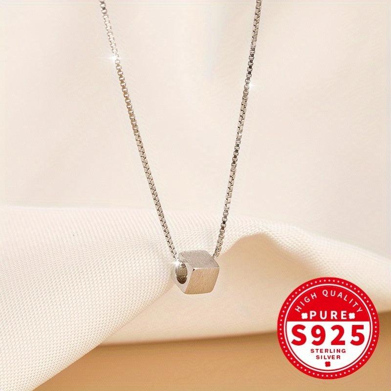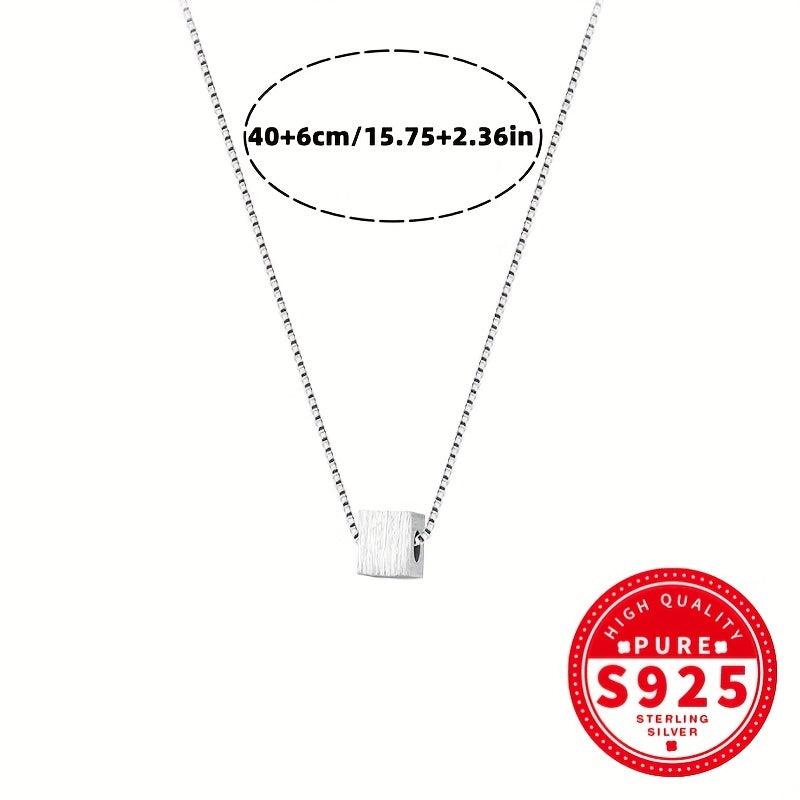 This elegant S925 sterling silver necklace features a small square pendant with a unique geometric design that adds sophistication to any outfit. Perfect for both daily wear and parties.