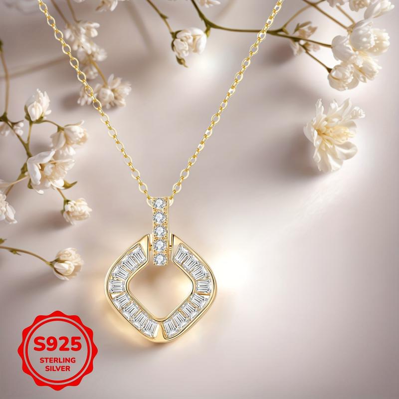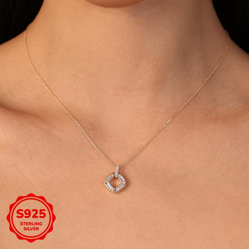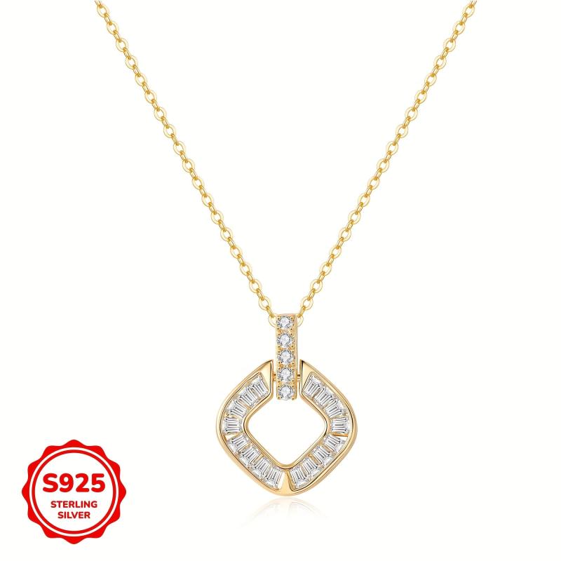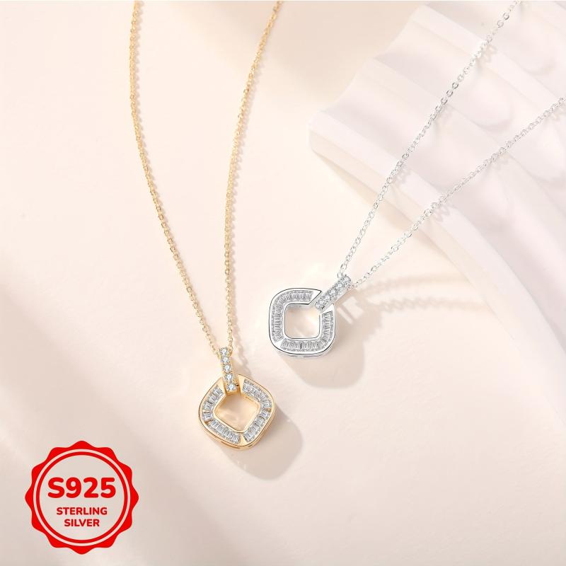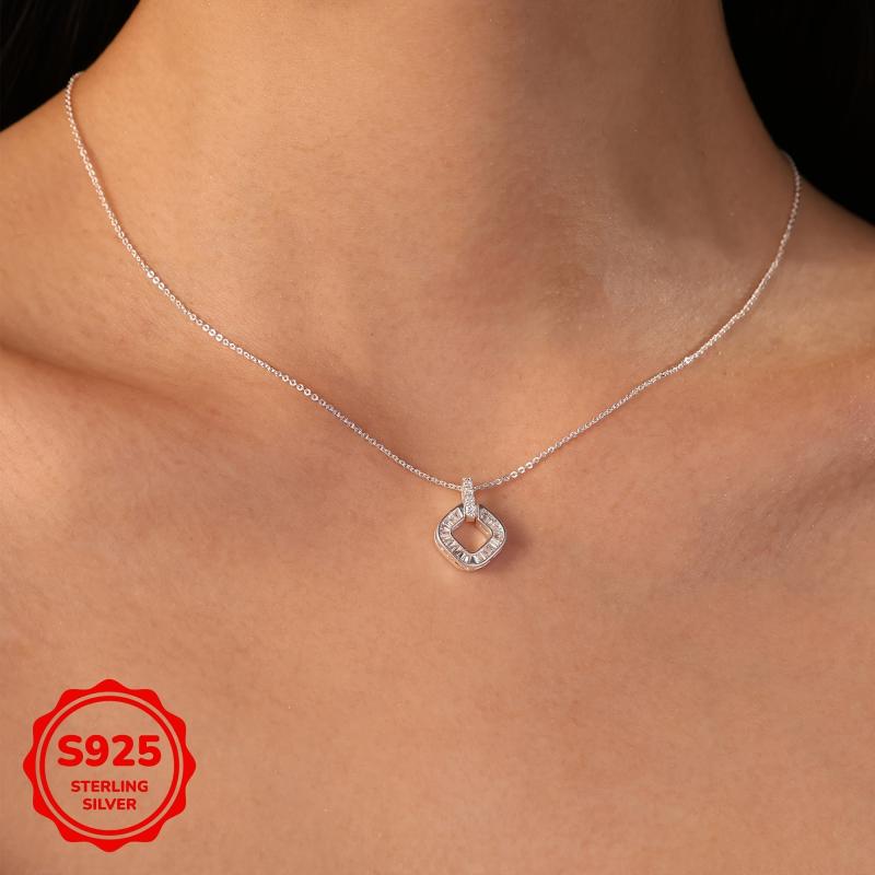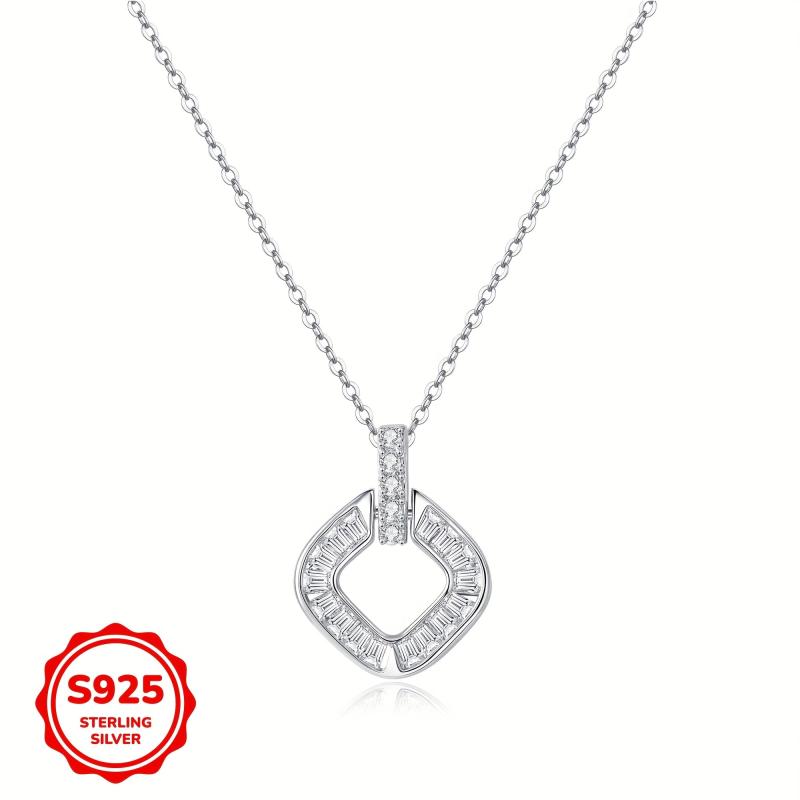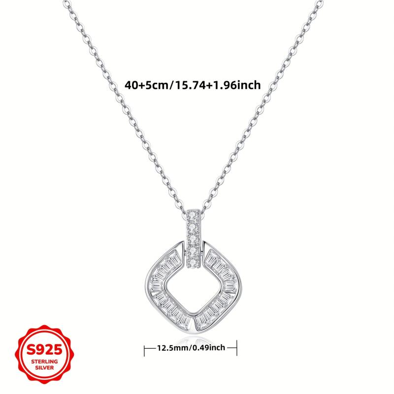 Add elegance to your outfit with this stunning S925 sterling silver necklace featuring a square pendant accented with dazzling synthetic zirconia.