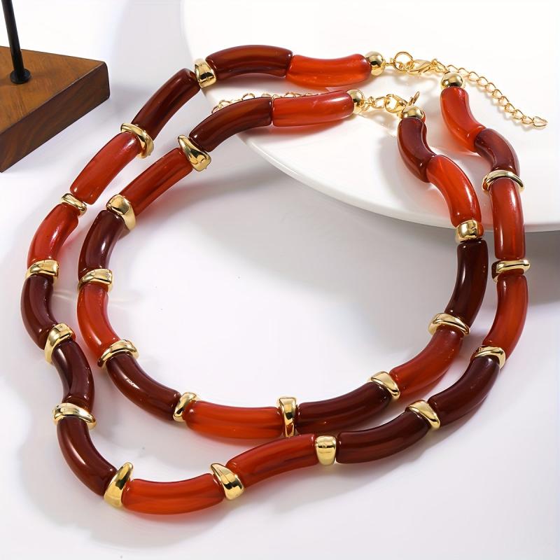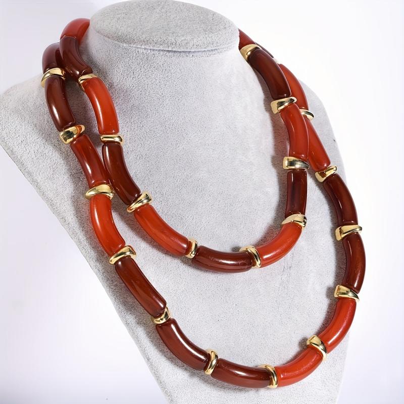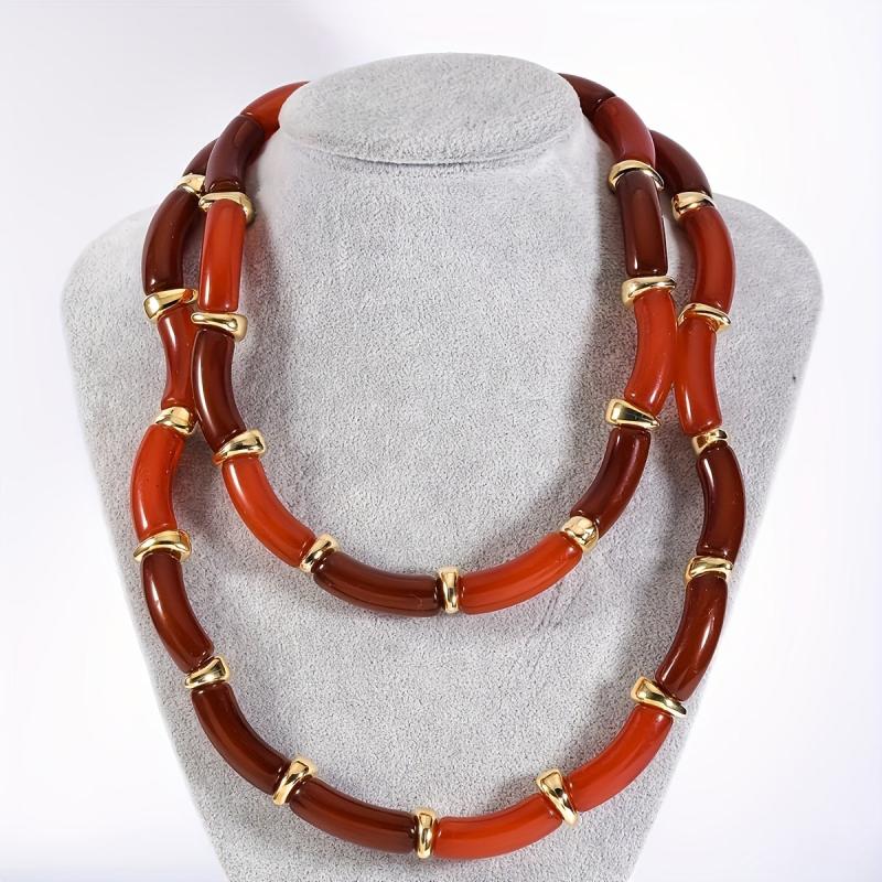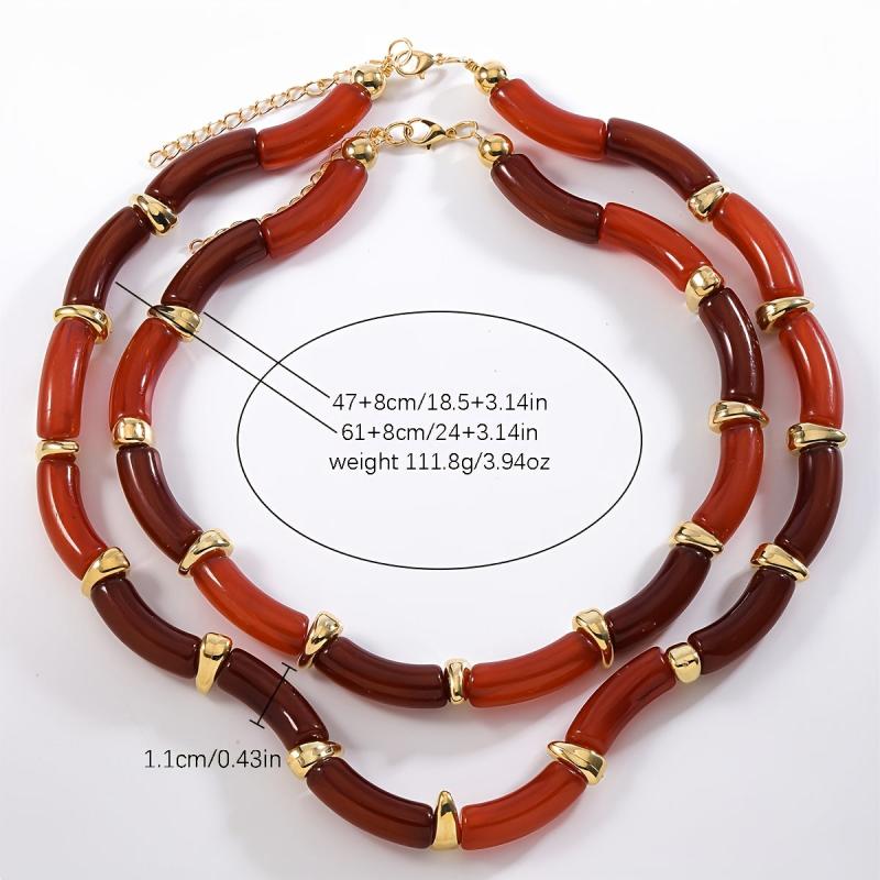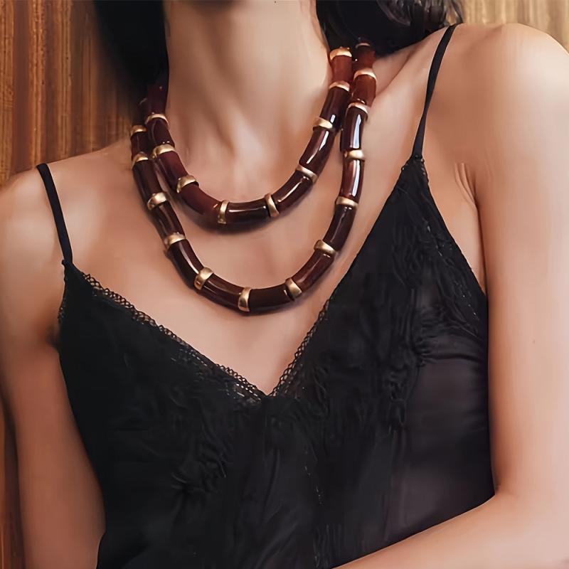 Add a touch of vintage charm to your outfit with this set of 2 irregular resin bamboo segment necklaces. Perfect for parties or vacations, these necklaces make a great gift for friends and family.
