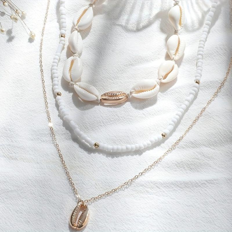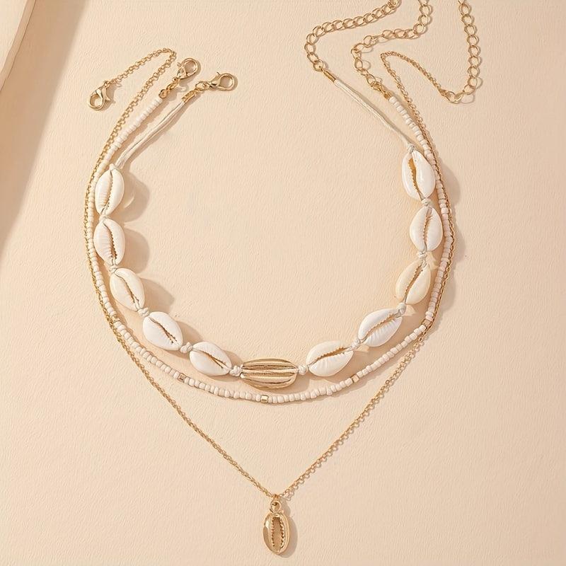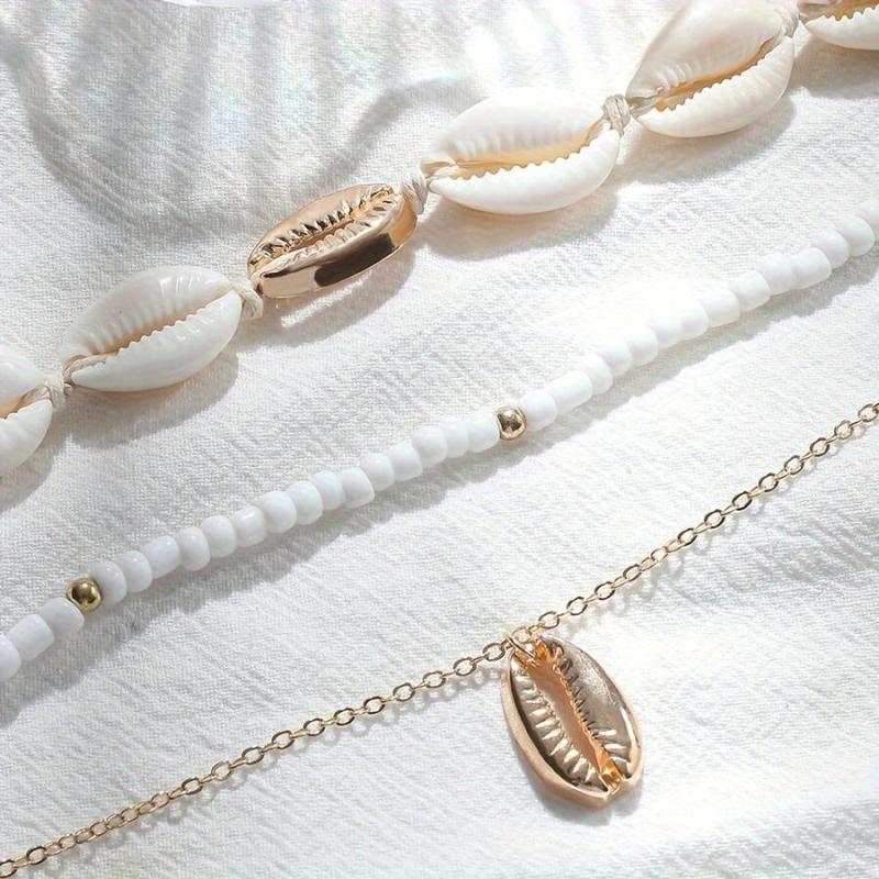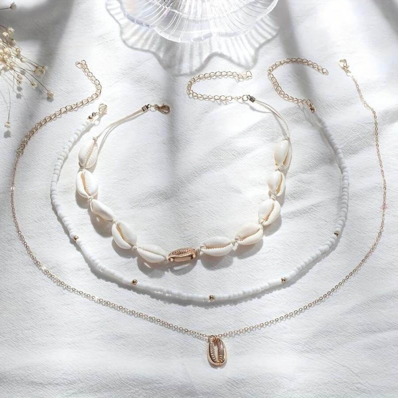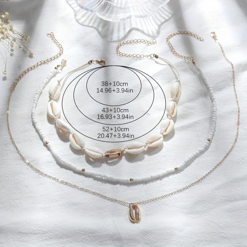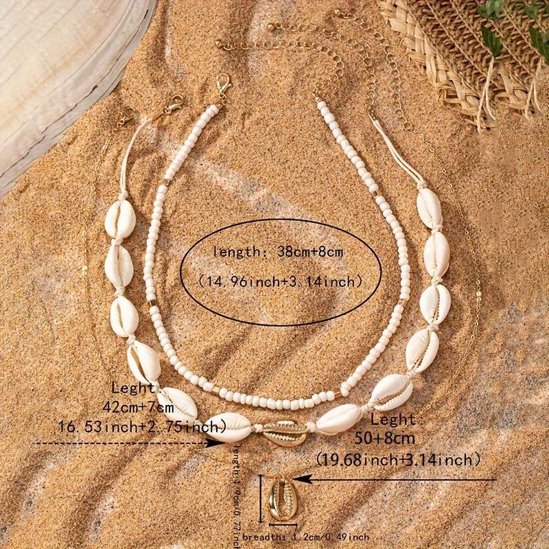 Shell Beaded Necklace Set Minimalist Vacation Style