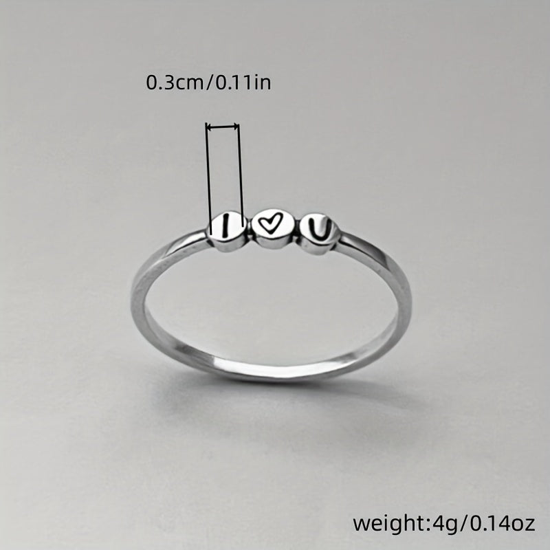 Silver Plated 'I Love U' Band Match Daily Outfits Perfect Dating Gift